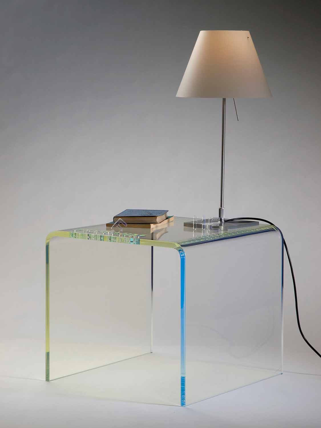 Leielui este un set de noptiere realizate manual în Italia cu materiale 100% italiene, cum ar fi metacrilatul.