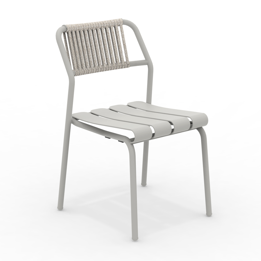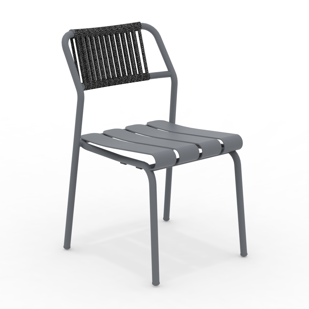Structura ușoară, dar robustă, este concepută pentru a oferi cel mai bun confort, cu un șezut ergonomic și un spătar modelat din frânghie , care asigură un suport confortabil și relaxant. Lamelele din aluminiu conferă un aspect dinamic și modern, în timp ce finisajul adaugă o notă de eleganță și rafinament.