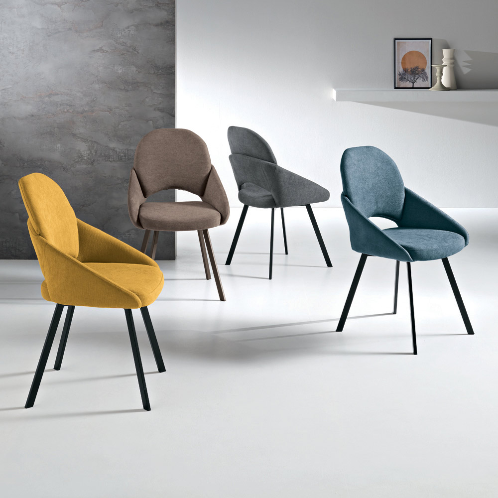 Cadrul metalic vopsit asigură soliditate și stabilitate în timp, completând designul cu linii curate și contemporane. Combinând confortul, materialele de calitate și stilul versatil, aceste scaune reprezintă o soluție practică și elegantă pentru orice spațiu.