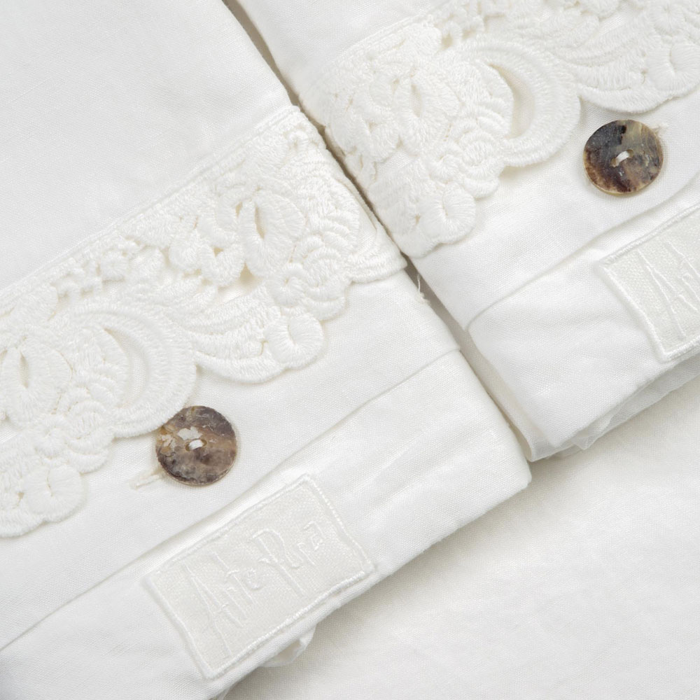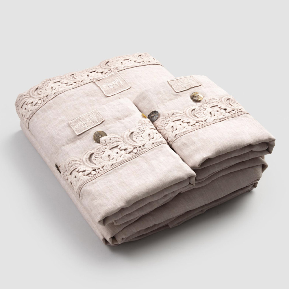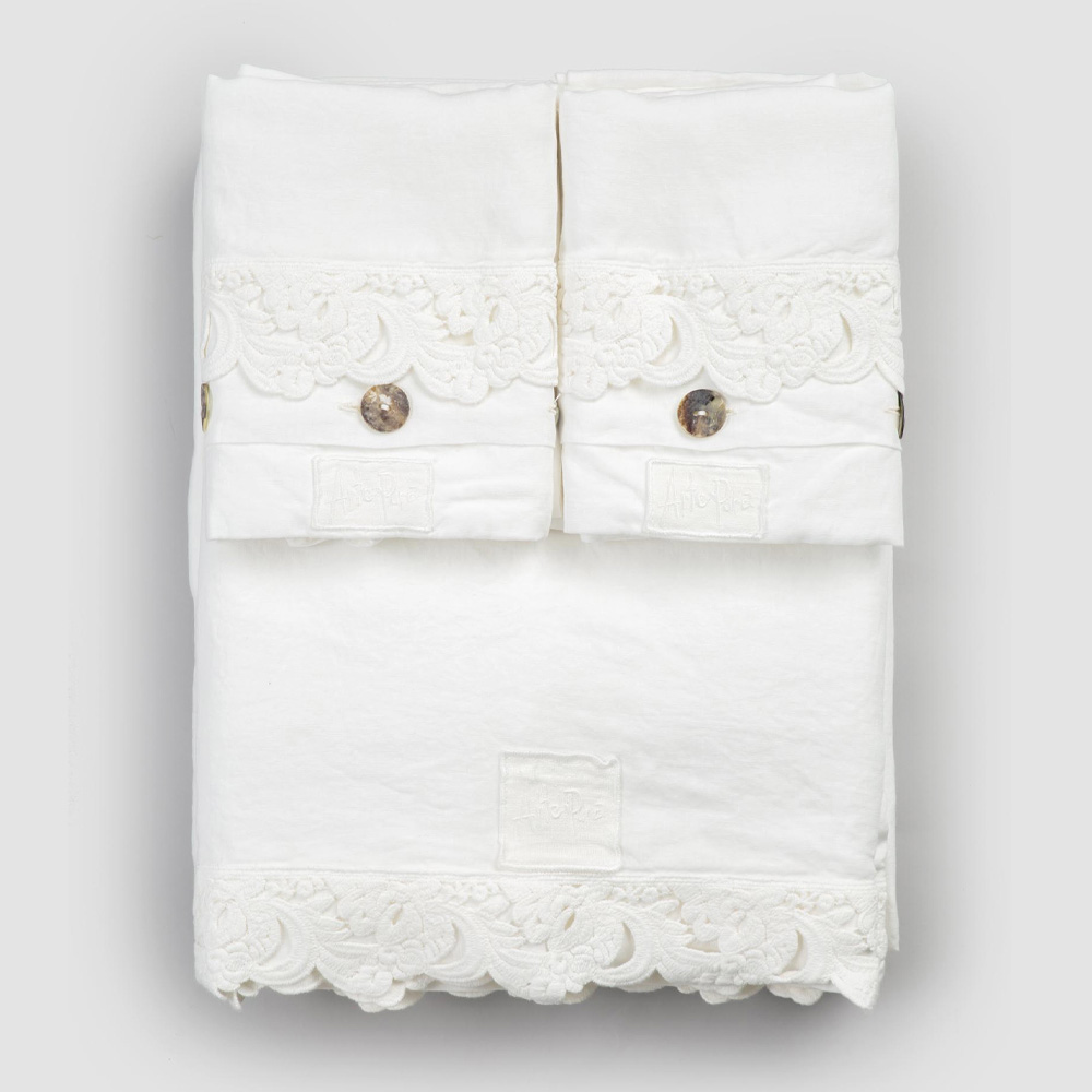 Set de lenjerie de pat dublu cu dantelă armonioasă în două culori, de lux made in Italy.