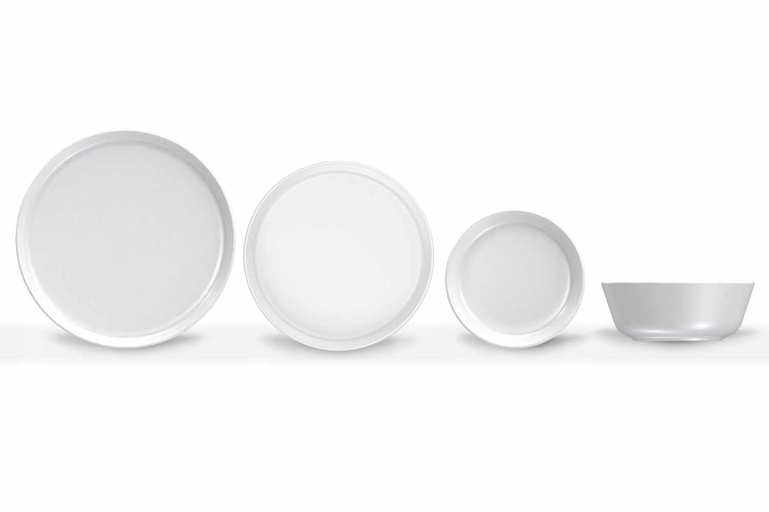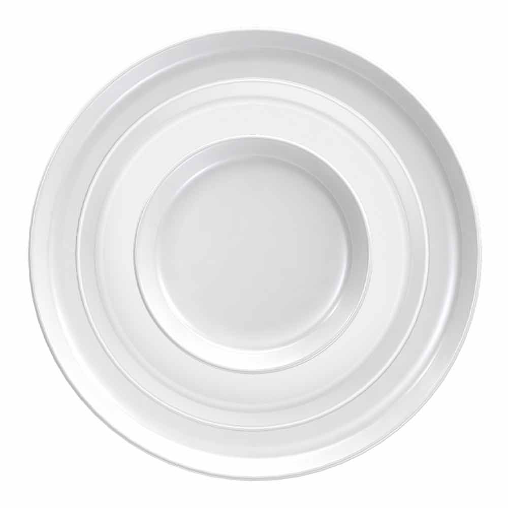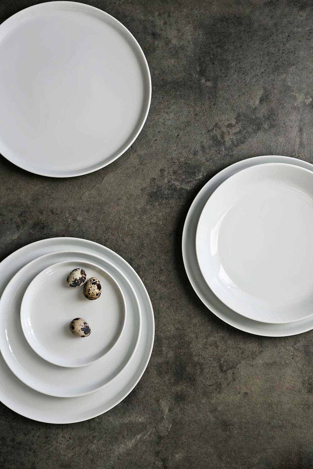 centru spațios, cu o margine îngustă și abruptă. În acest fel, eleganța estetică și funcționalitatea sunt combinate pentru a oferi o zonă mai mare dedicată prezentării alimentelor și o manipulare practică a farfuriei.