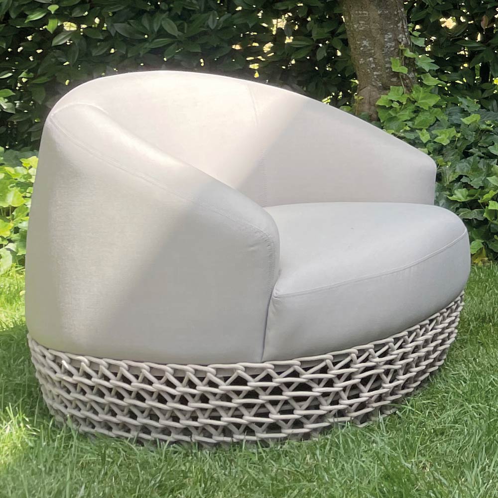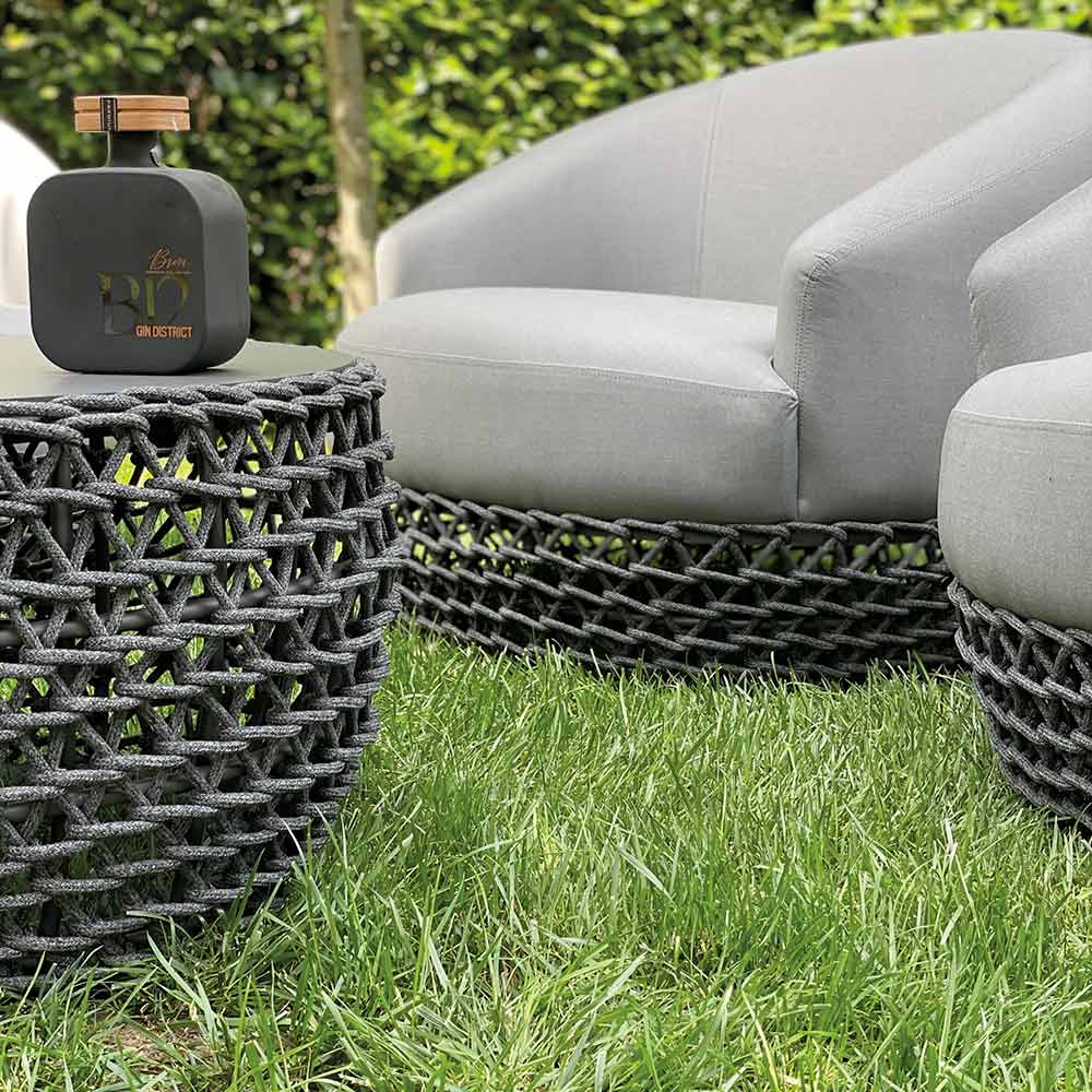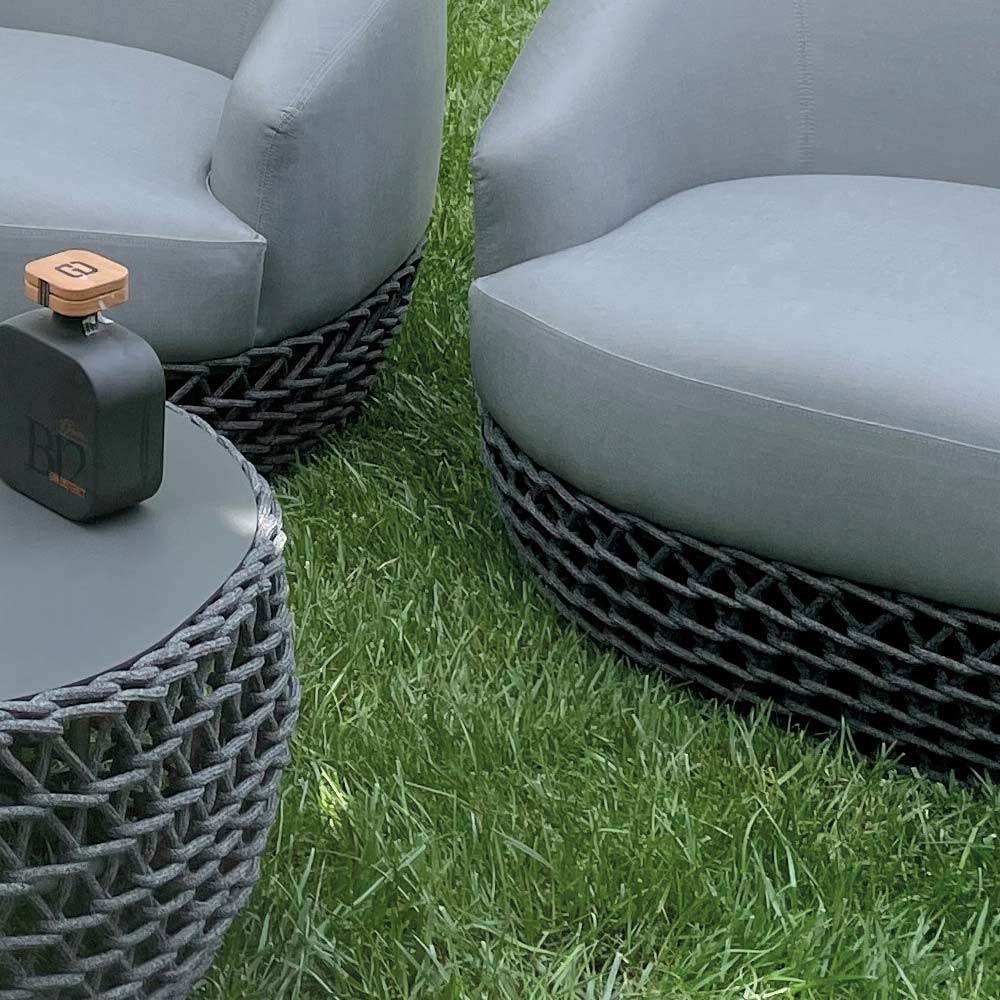 Acest lounge de grădină este un exemplu perfect de design moale și învăluitor , unde fiecare detaliu este conceput pentru a oferi confort , eleganță și rezistență la exterior. Scaunele, formate dintr -o canapea si fotolii , sunt imbracate in material de exterior intr-o nuanta neutra si rafinata care se potriveste in mod natural cu orice context verde.