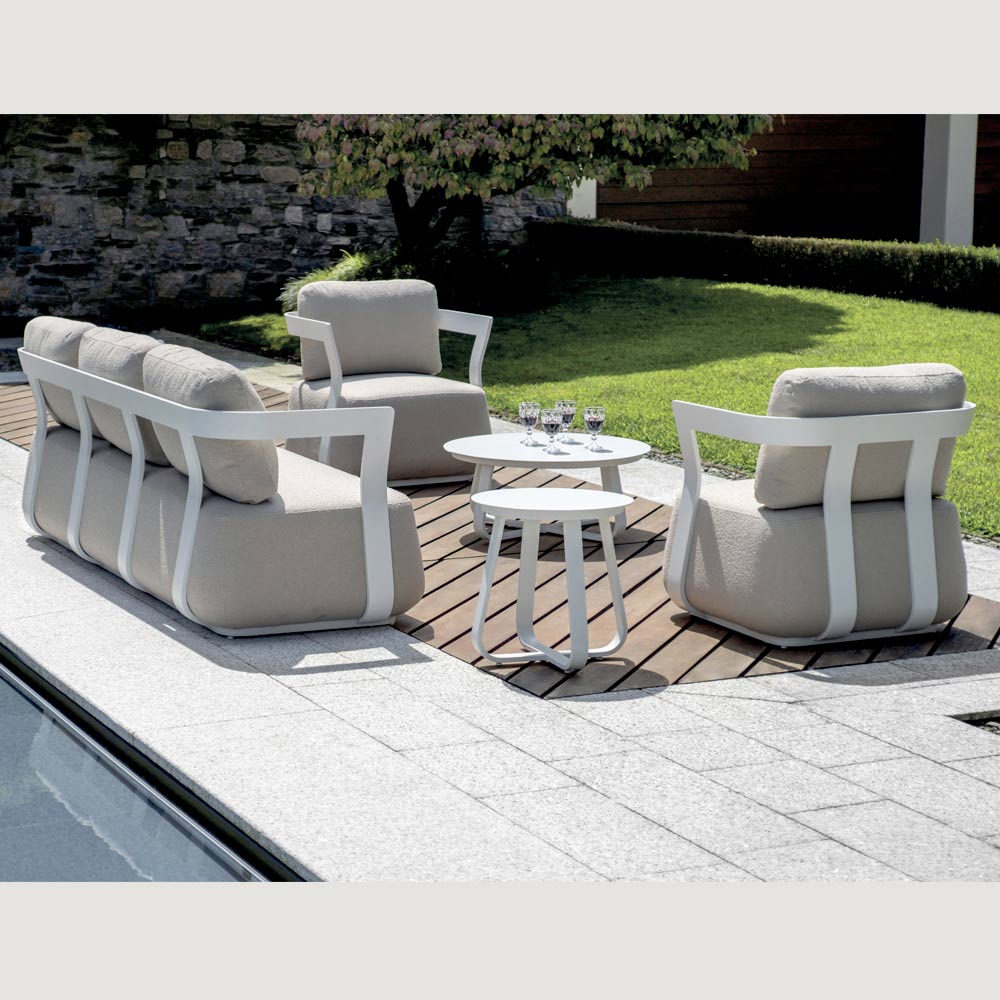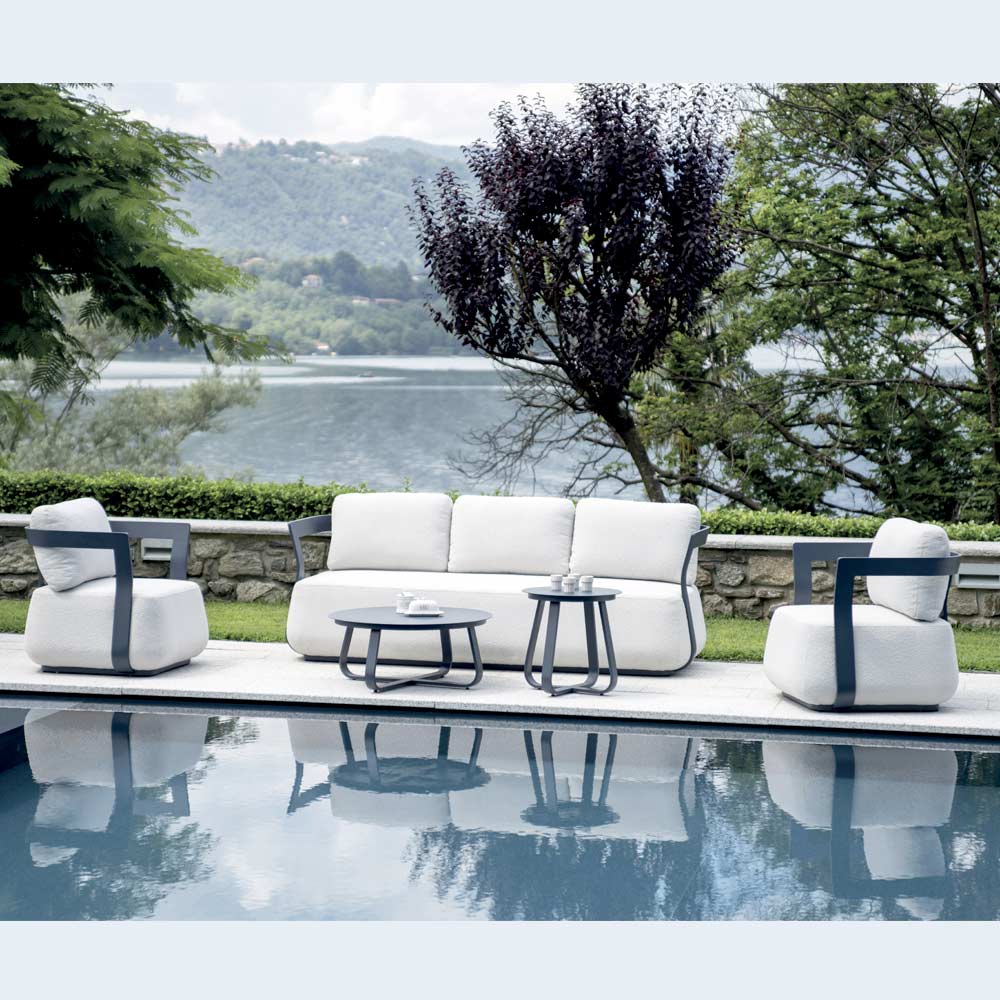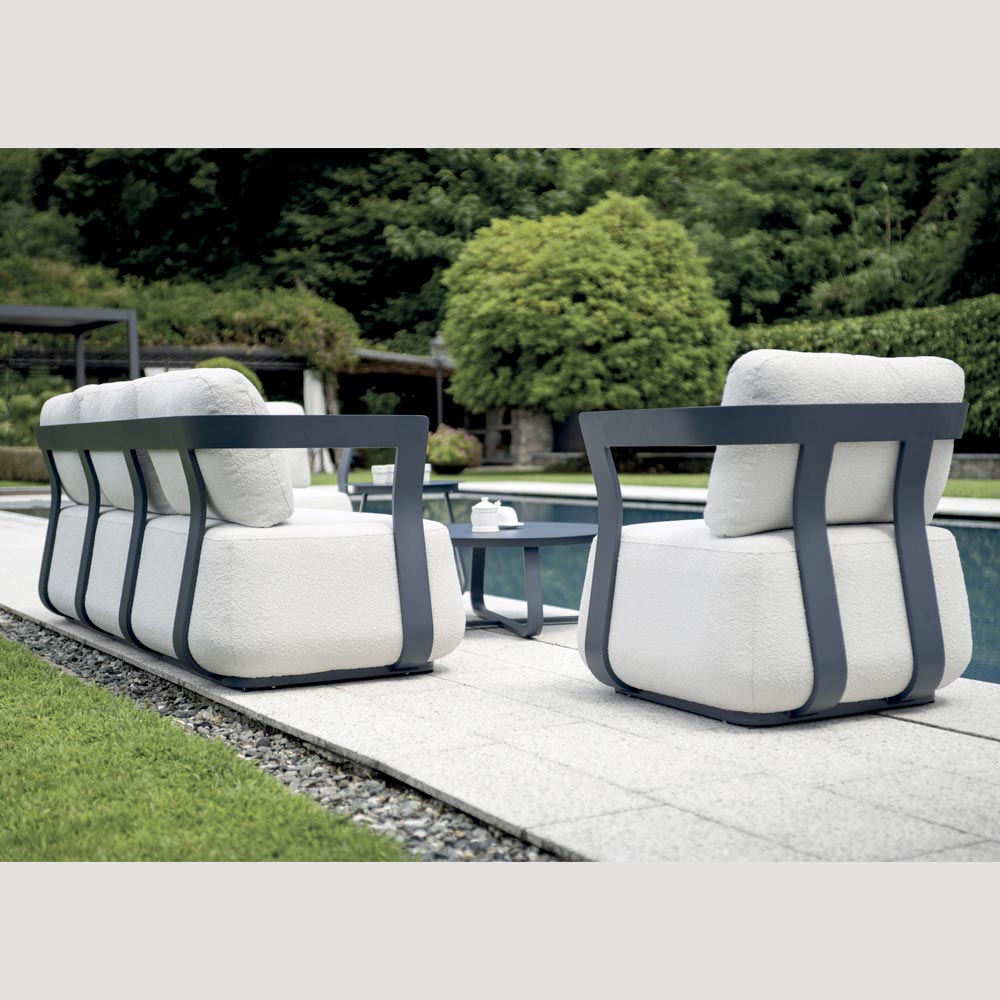 Rama din aluminiu asigură ușurință, soliditate și durabilitate, menținând în același timp un aspect elegant și contemporan. Pernele înalte, moi și învăluitoare asigură un confort superior și un suport optim, invitându-vă să vă relaxați în confort total.