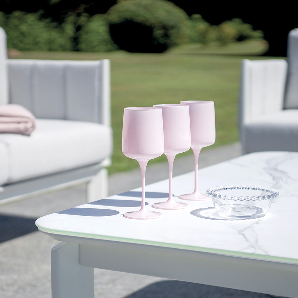 Acest set de mobilier de grădină combină stilul contemporan, confortul și rafinamentul , creând un decor exterior elegant și primitor. Compus din două fotolii , o canapea cu trei locuri și o măsuță de cafea cu blat din sticlă cu efect de marmură , este perfect pentru a mobila terase, verande și spații de lângă piscină cu clasă și funcționalitate.