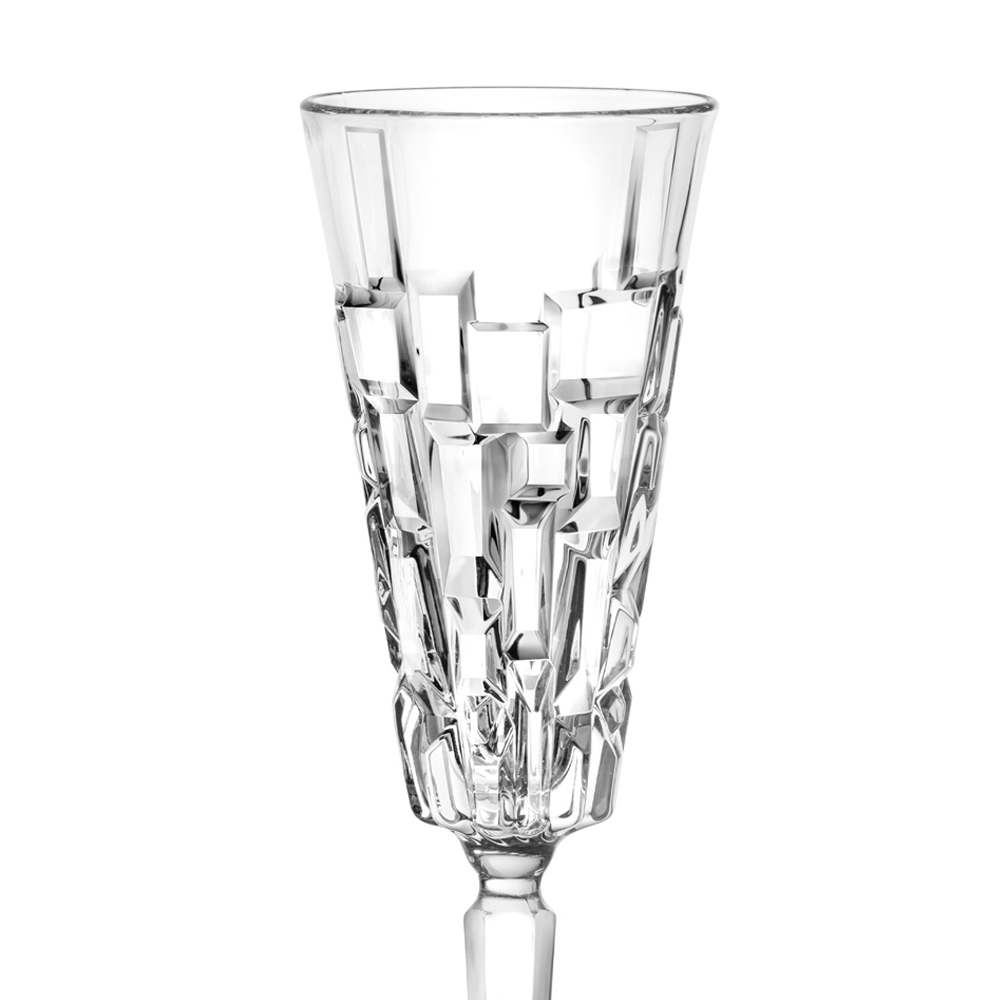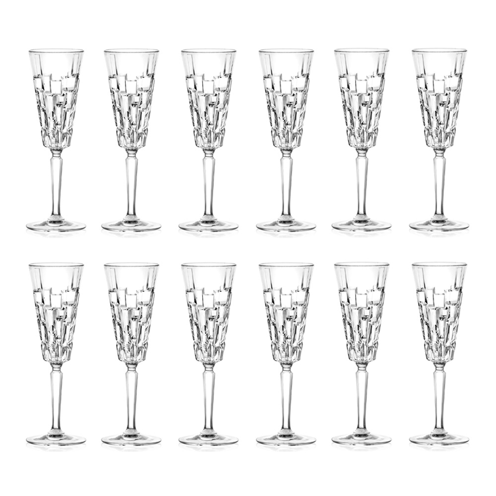 Set de pahare cu flaut din cristal eco decorat cu sculpturi, 12 piese fabricate în Italia.