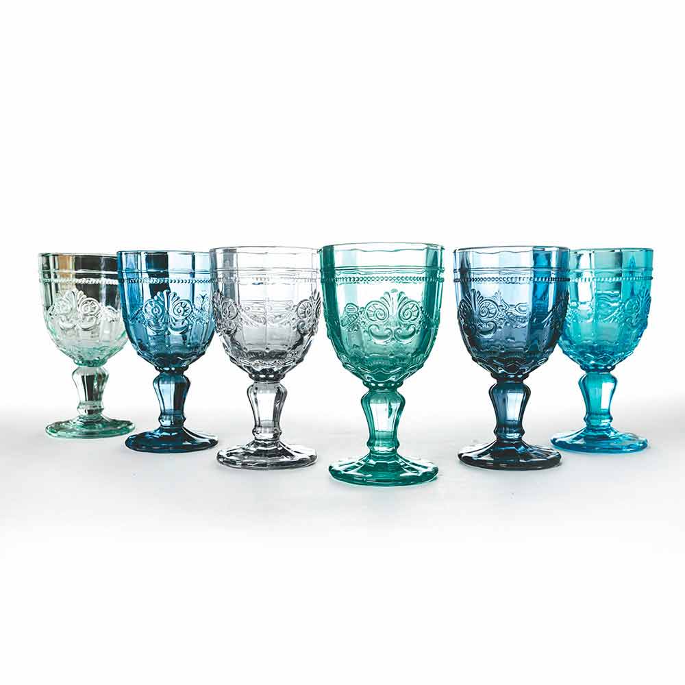 Pahare de vin colorate în pahar cu decorațiuni orientale, 12 bucăți.