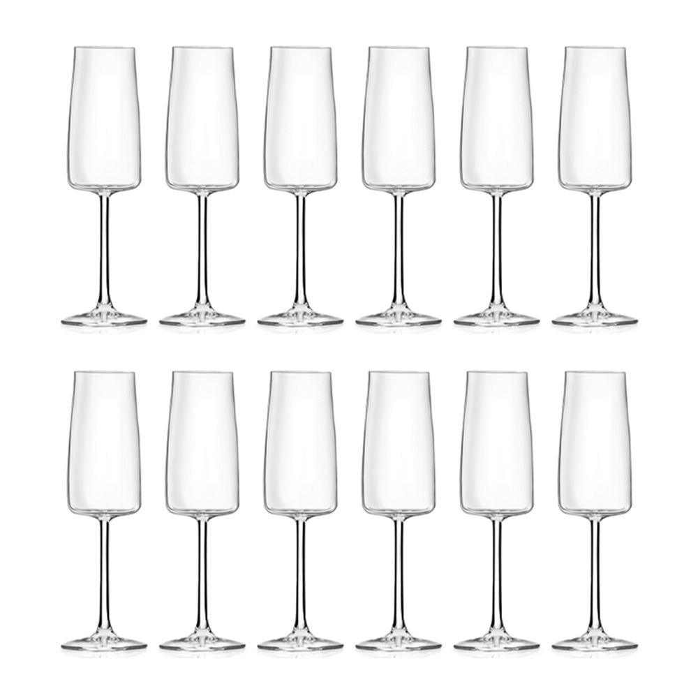 Pahare de vin spumant sau flaut de șampanie în minim cristal ecologic, 12 bucăți fabricate în Italia.
