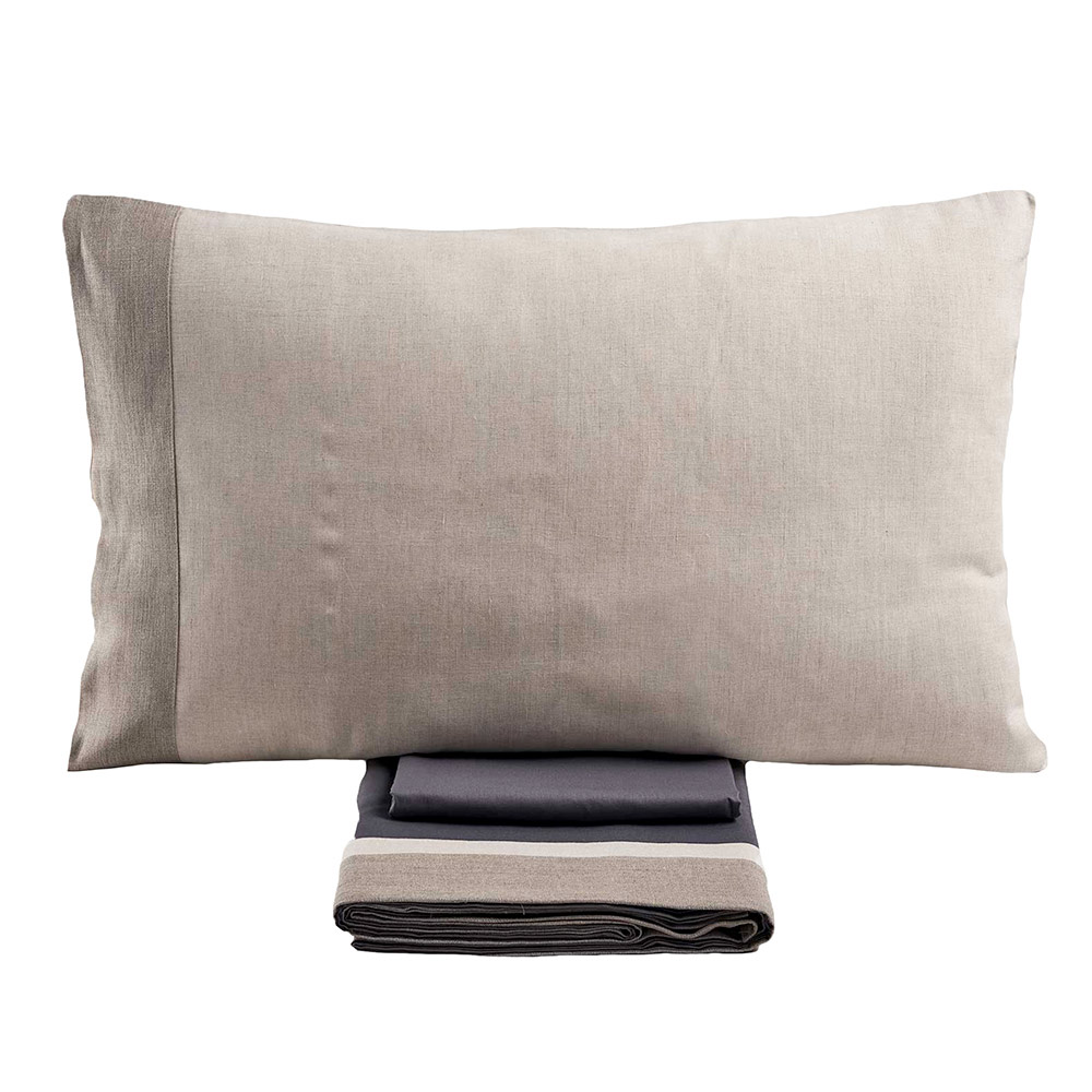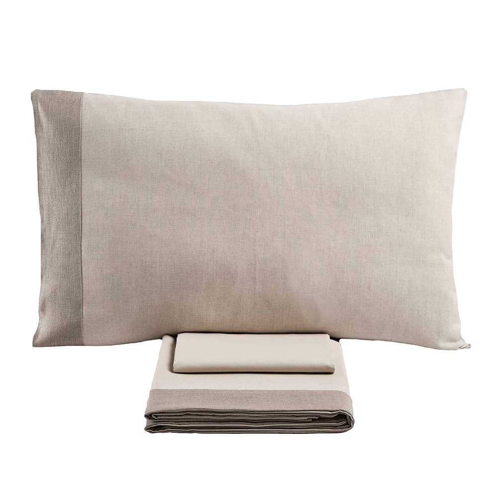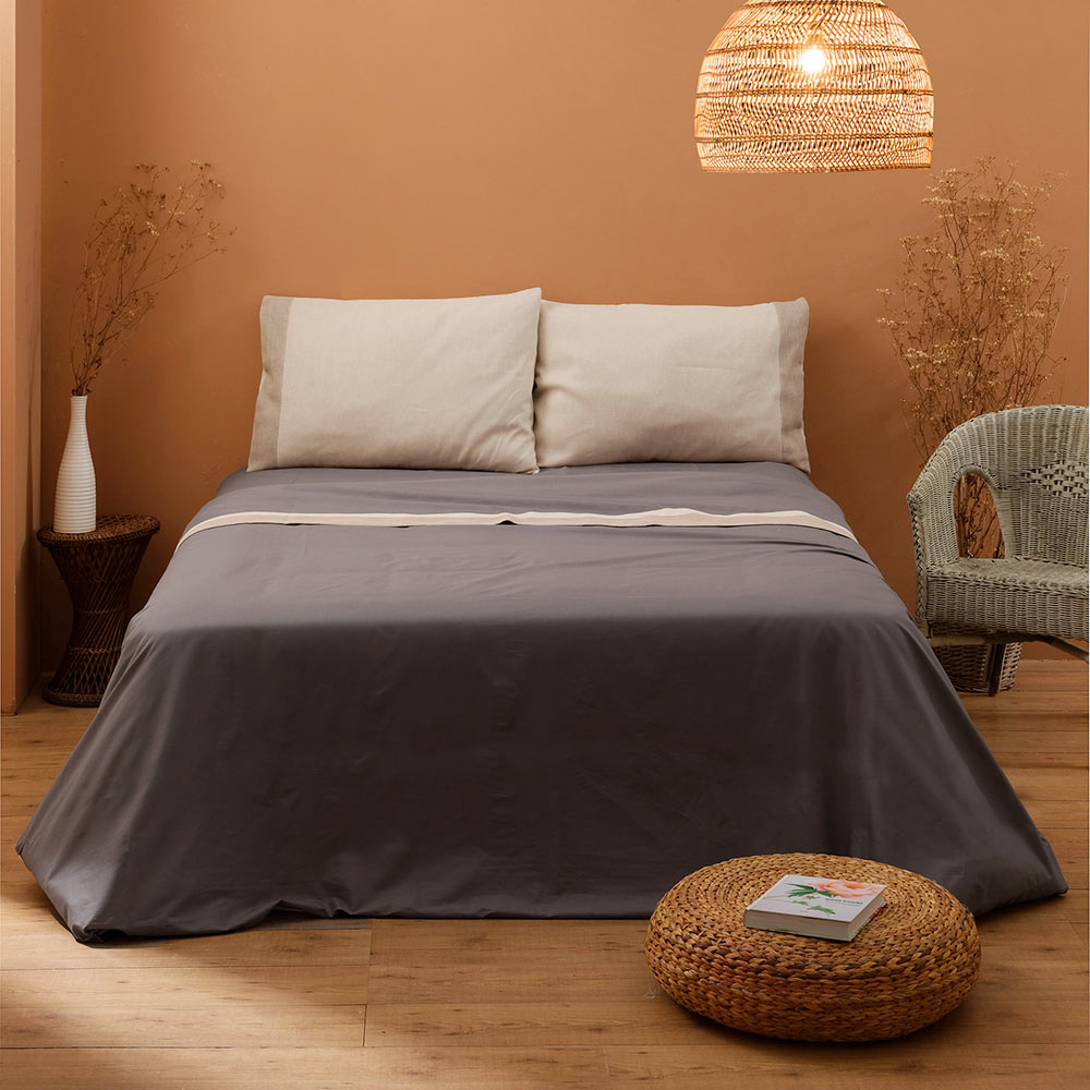 Descoperiți setul de pat dublu realizat dintr-un amestec fin de 90% bumbac și 10% in , o combinație ideală pentru cei care caută confort maxim combinat cu un design impecabil. Această compoziție unică combină moliciunea și respirabilitatea bumbacului cu rezistența și prospețimea naturală a inului, oferind o experiență superioară de somn în fiecare anotimp.