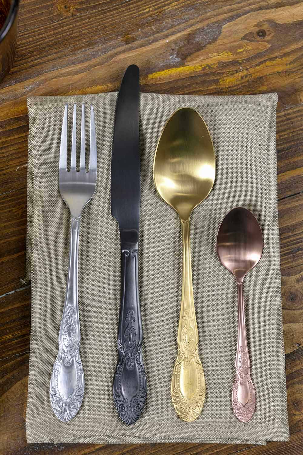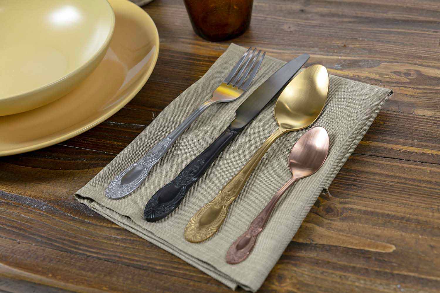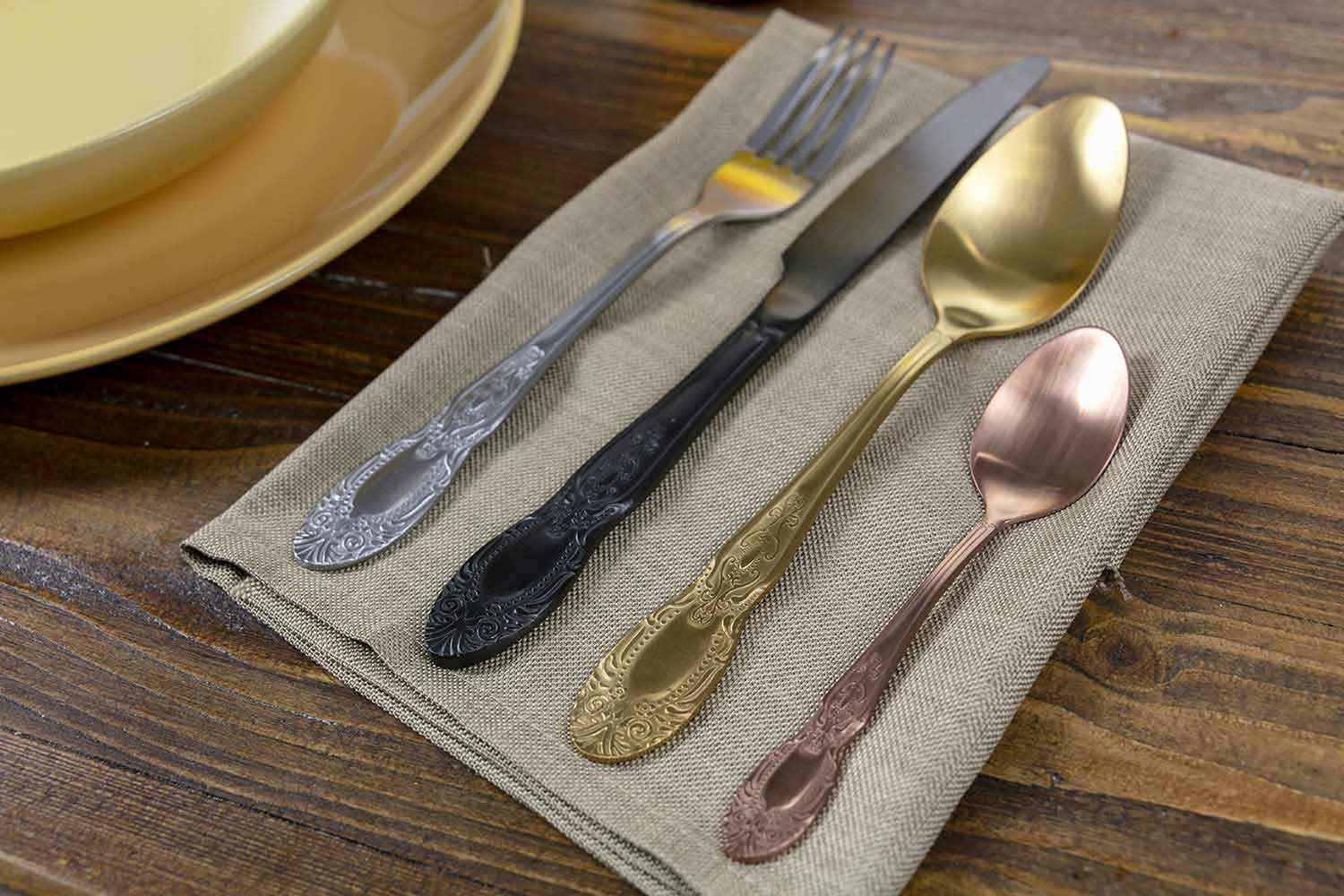 Set de tacâmuri din 24 de piese din oțel satinat colorat complet cu design.