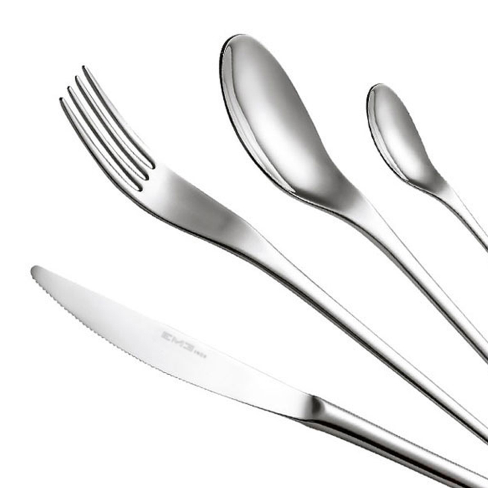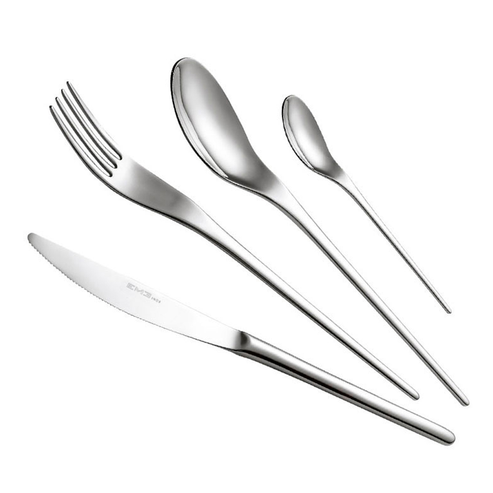 Set tacâmuri din oțel inoxidabil lustruit, design zvelt în stil oriental, 24 de piese fabricate în Italia.