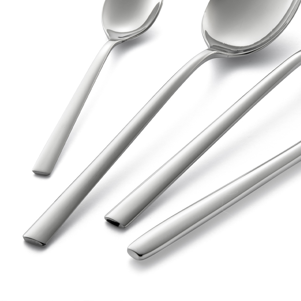 tacâmuri din oțel inoxidabil 18/10 , adică cu 18% crom și 10% nichel, care garantează o rezistență excelentă la coroziune și ușurință în curățare cu un coeficient igienic excelent.
