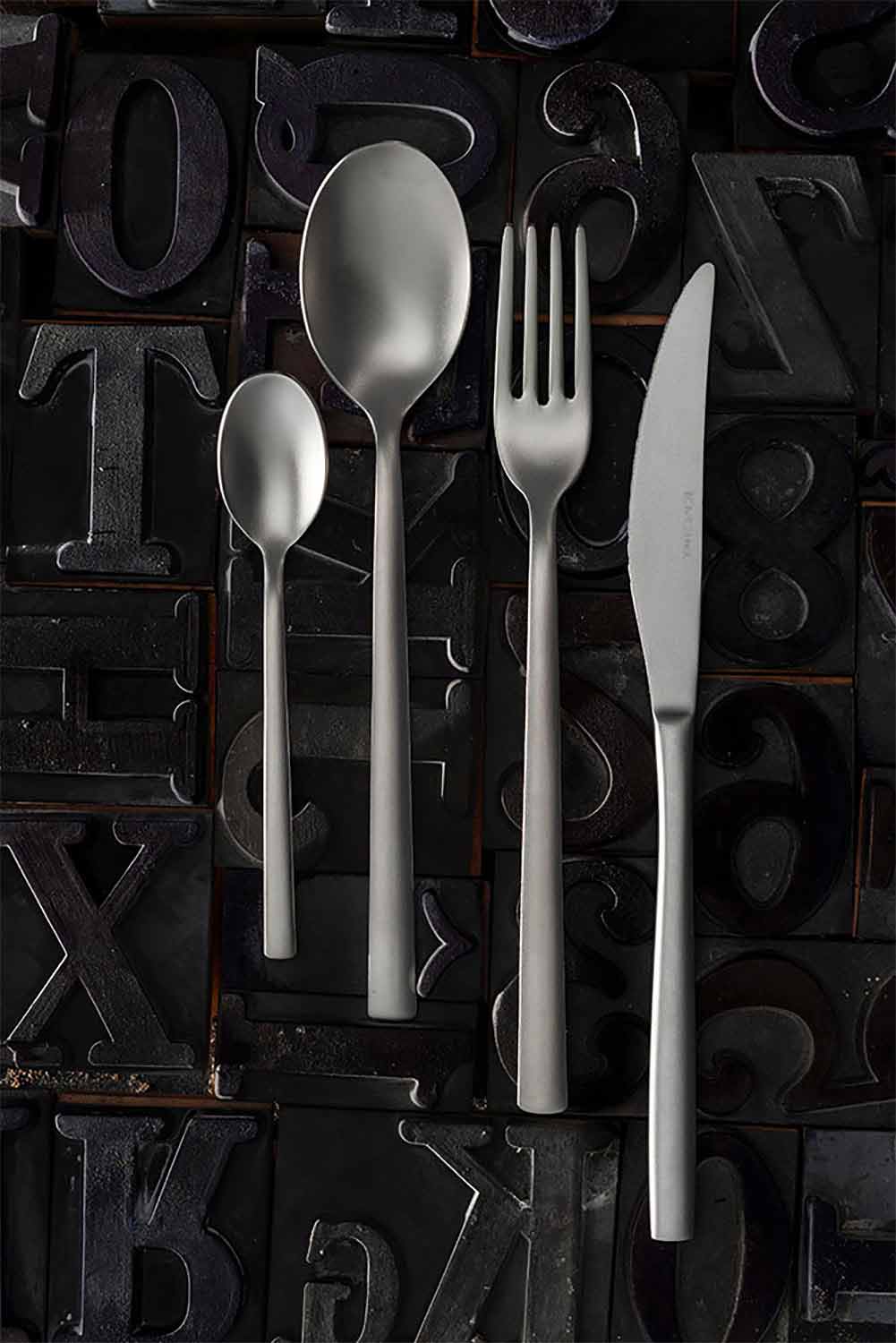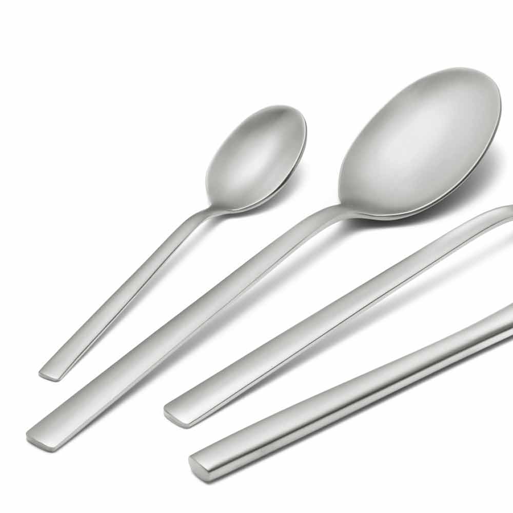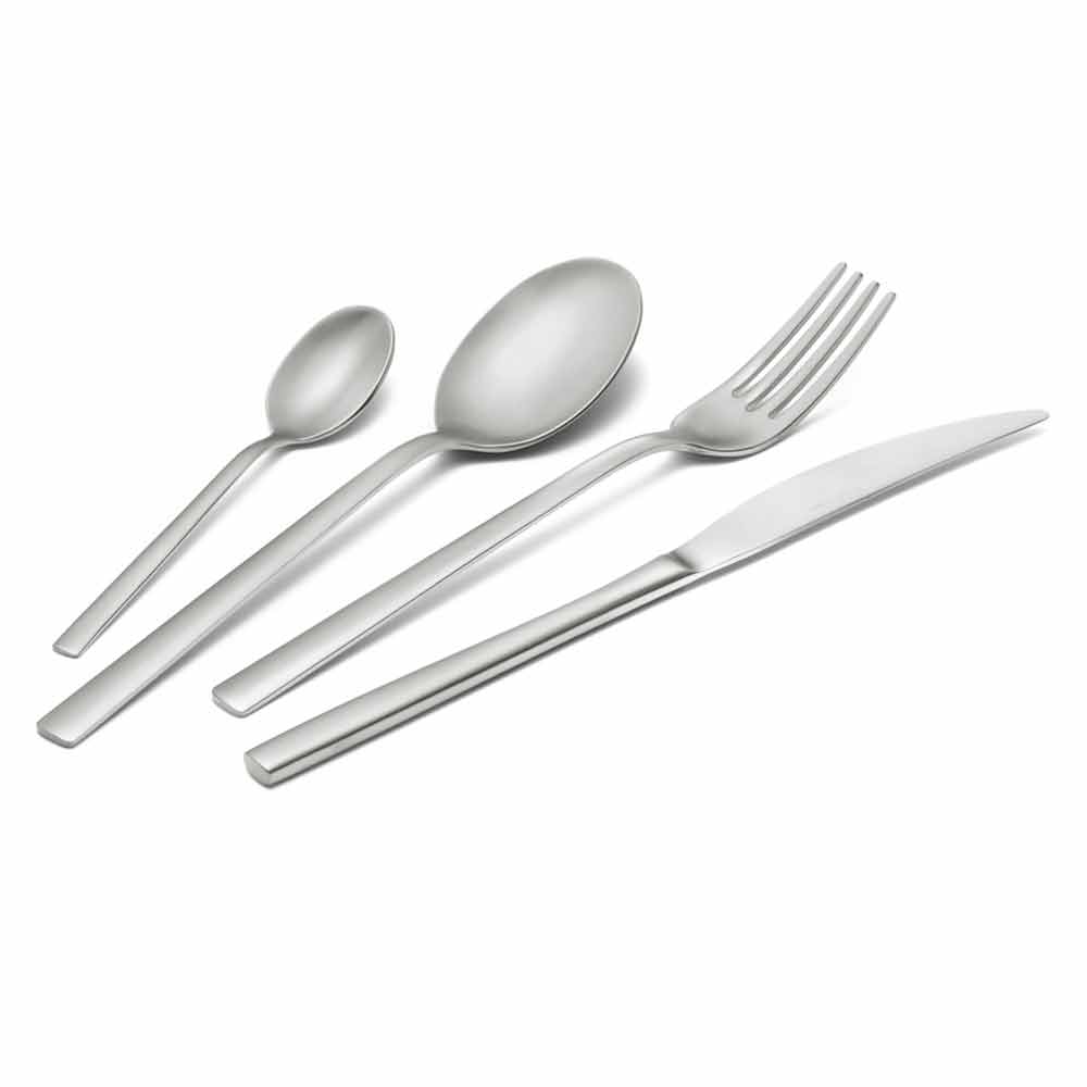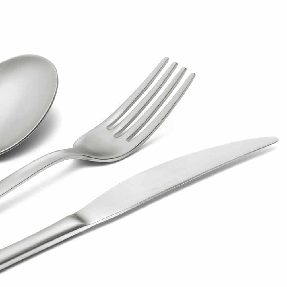 Set de tacâmuri complete din oțel inoxidabil sablat, 24 de piese din design made in Italy.