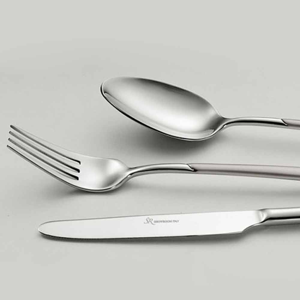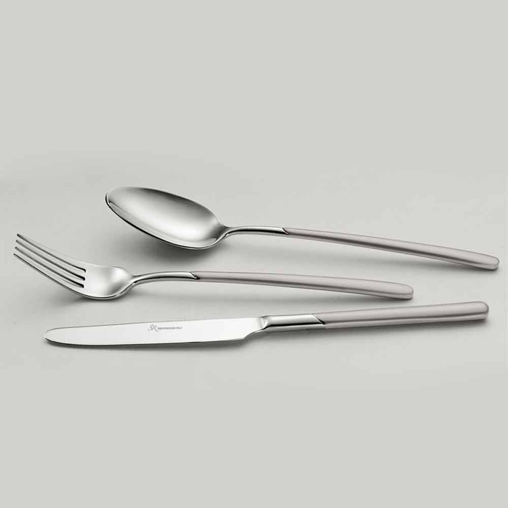 Set de 24 de tacâmuri din oțel inoxidabil lustruit cu mâner sablat de design made in Italy.