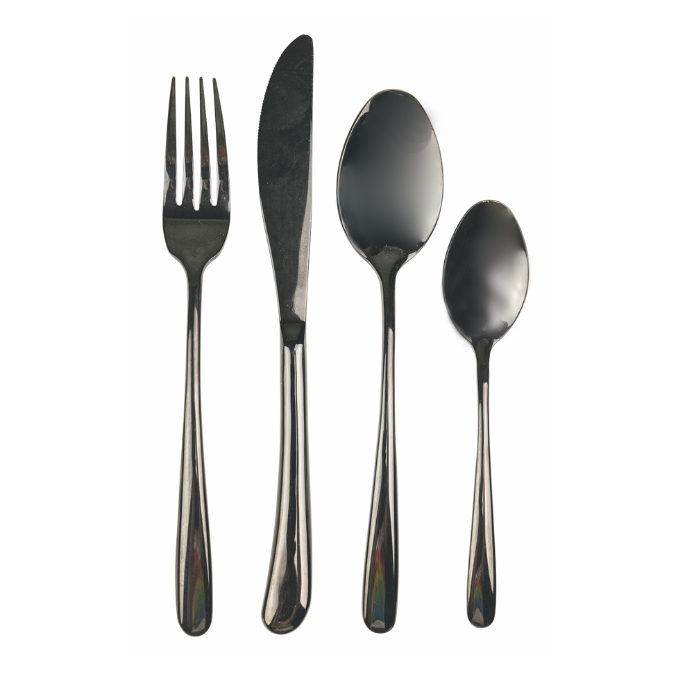 Set de tacâmuri din oțel negru lucios design rotunjit 24 de bucăți - picătură