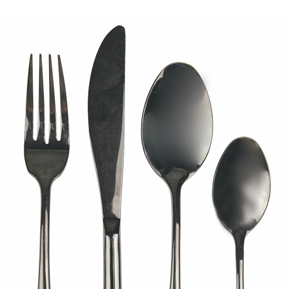 Set de tacâmuri din oțel negru strălucitor, design în lacrimă din 24 de piese.