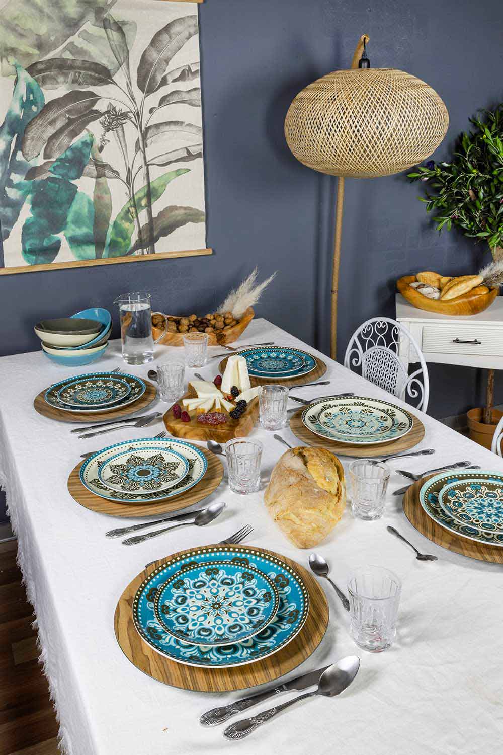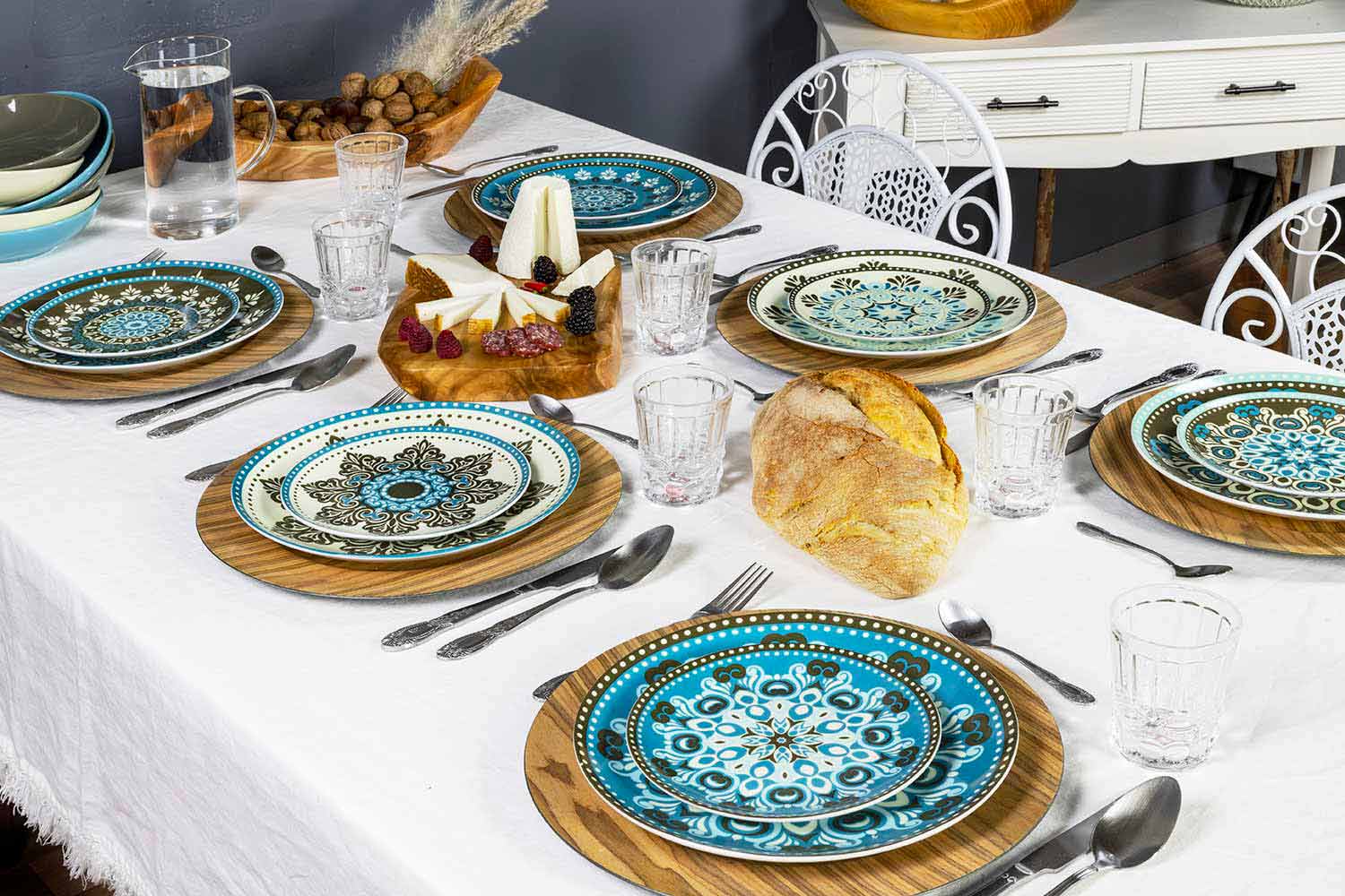 - 6 locuri de masă în 6 decorațiuni / culori diferite față de celelalte feluri de mâncare din același set