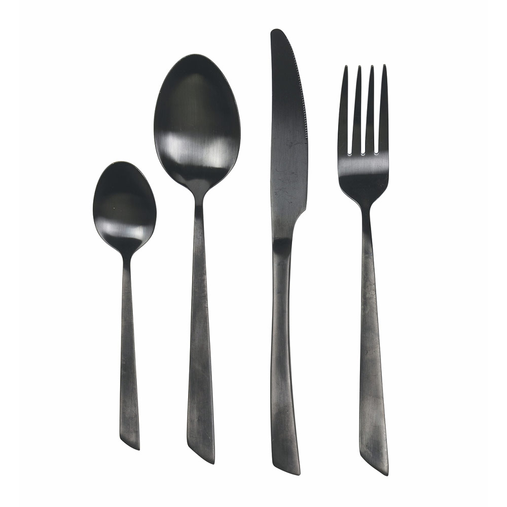 Set de tacâmuri cu design din 24 de piese din oțel negru sau cupru mat.