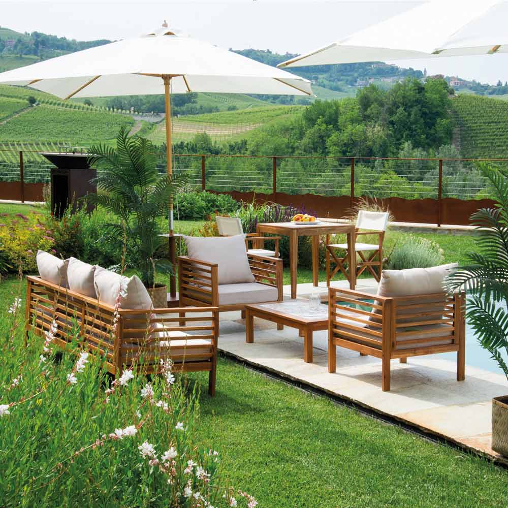 Acest set lounge din lemn este ideal pentru a adăuga o notă de eleganță naturală și confort spațiului dvs. exterior sau camerei de zi. Compus dintr-o canapea mare , două fotolii simple și o masă centrală cu un blat fermecător din plăci ceramice, acest set este perfect pentru a vă distra oaspeții sau pentru a vă bucura de momente de relaxare alături de familie.