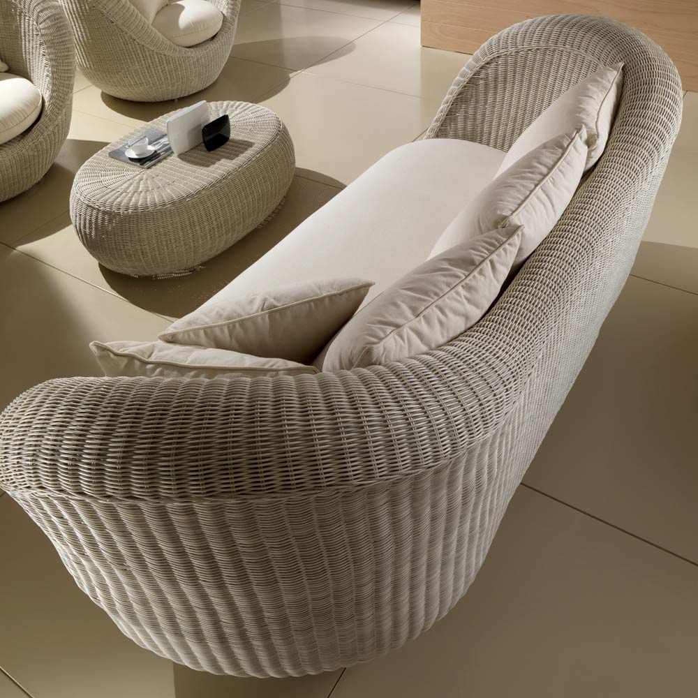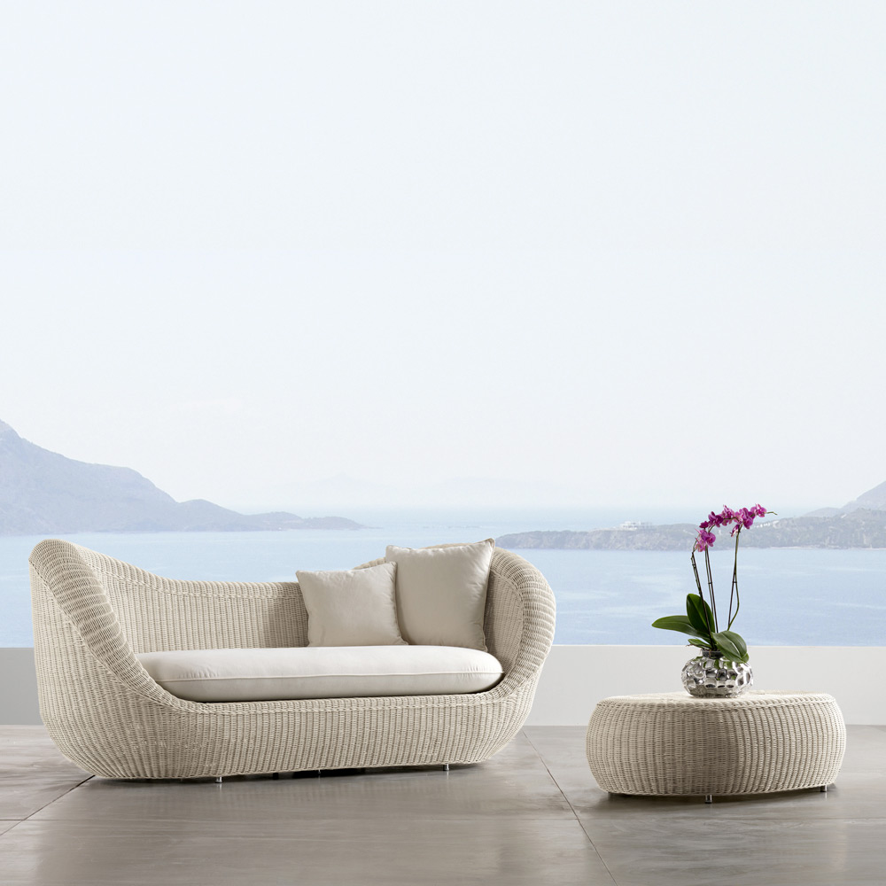 Acest salon de exterior se caracterizează prin designul sinuos și atemporal , liniile rotunjite și rafinamentul împletiturii realizate manual de cei mai buni artizani din lume. din răchită sintetică. cadrul este realizat din aluminiu acoperit cu pulbere , pe care este țesută manual fibra de cea mai înaltă calitate marca Rehau Polyrattan.