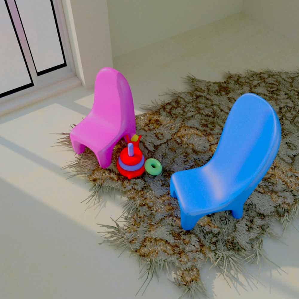 Formele plastice și moi pentru ochi dau viață și două scaune pentru copii, jucăușe și pline de spirit, făcute elegante ca două mici tronuri de prinți datorită calităților Solid Surface; .
