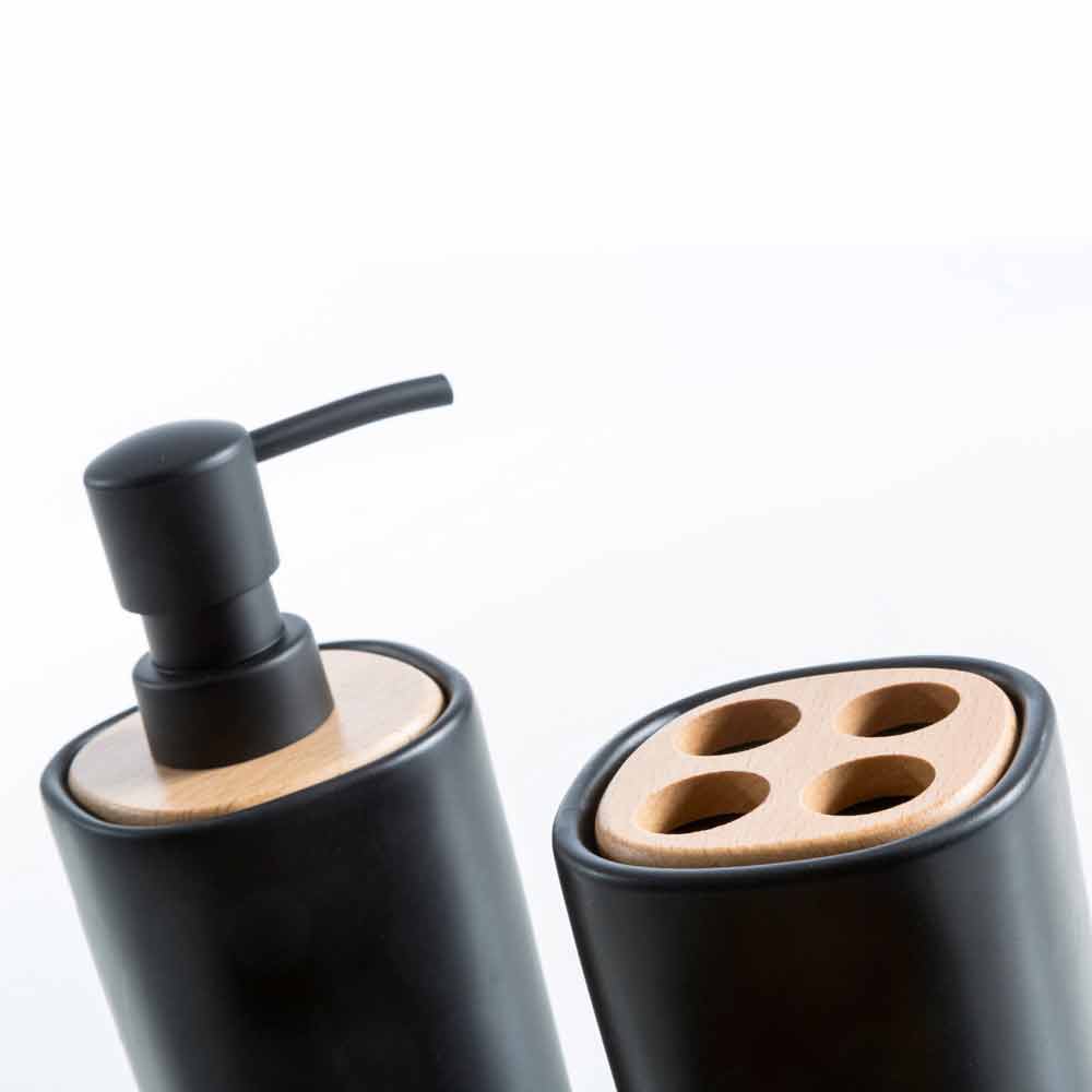 Set de accesorii moderne pentru baie din ceramica Carsoli si lemn