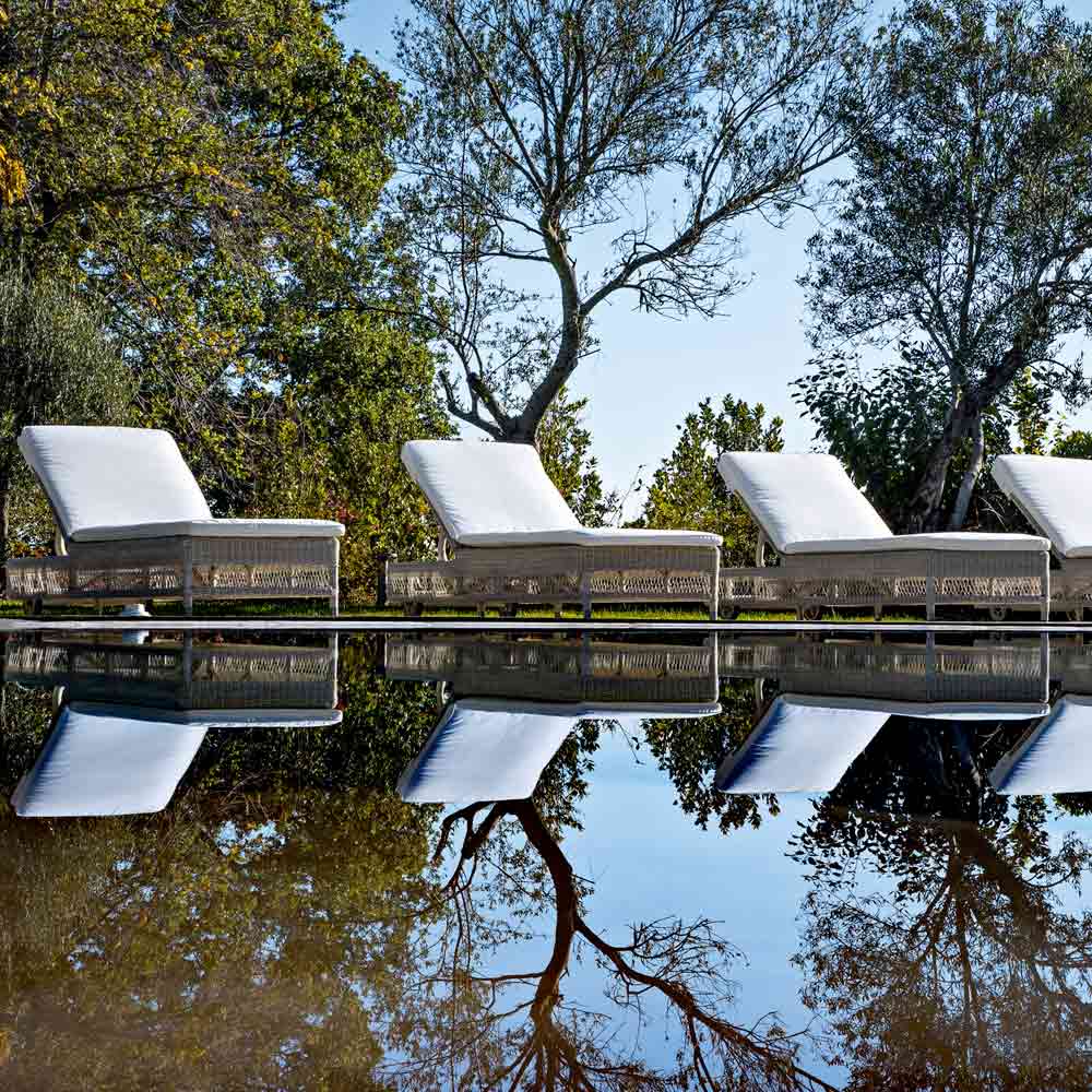 Stilul de țesătură este rafinat și delicat și împreună cu calitatea foarte ridicată a materialelor și formele sale hotărâtoare fac ca acest șezlong să fie perfect pentru amenajarea interioarelor și exterioarelor, atât a mediilor private, cât și a celor contractuale, cum ar fi terase, verande, grădini, dar își găsesc și un loc perfect lângă piscină.
