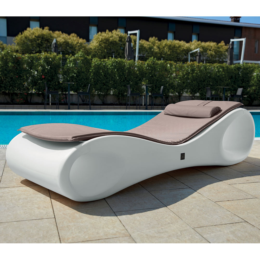 Acest șezlong de grădină din polietilenă este fabricat în Italia , caracterizat prin linii moi și o formă aproape învăluitoare care îl transformă într-o combinație perfectă de design și practicitate. Este de fapt ideal pentru a fi folosit ca șezlong în grădină, lângă piscină sau în orice altă zonă în aer liber. Practicitatea acestui șezlong constă și în prezența orificiului pentru evacuarea apei și a celor două deschideri de la capete care pot fi transformate în suprafață de sprijin dacă este necesar.