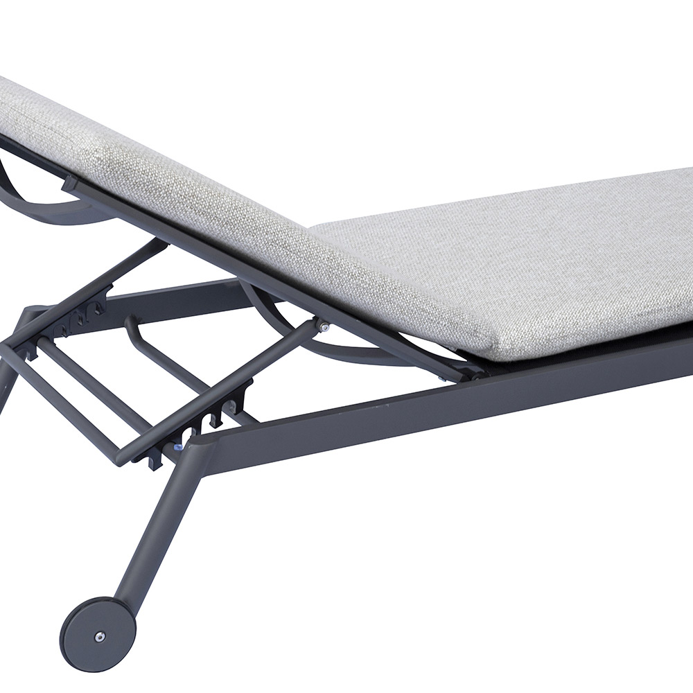 Acest șezlong combină confortul, eleganța și caracterul practic , oferind soluția ideală pentru a te bucura de momente de relaxare pură în aer liber. Fabricat cu un cadru și roți din aluminiu , este ușor, durabil și ușor de mutat, perfect pentru grădini, terase și zone de piscină.