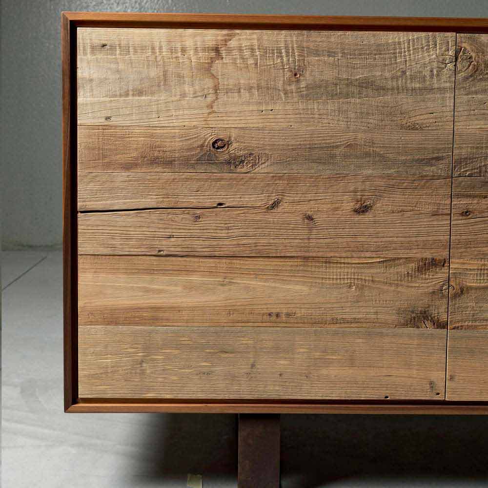 Cadru cu ușă anin în nuc furniruit frize din lemn natural, tivit solid. Anta furniruit arin. Picior de metal disponibil în Rust finisaj mat, negru sau finisaj din oțel care urmează să fie specificat atunci când comanda. Disponibil în 3 uși cu 3 compartimente interioare și rafturi din sticlă.
