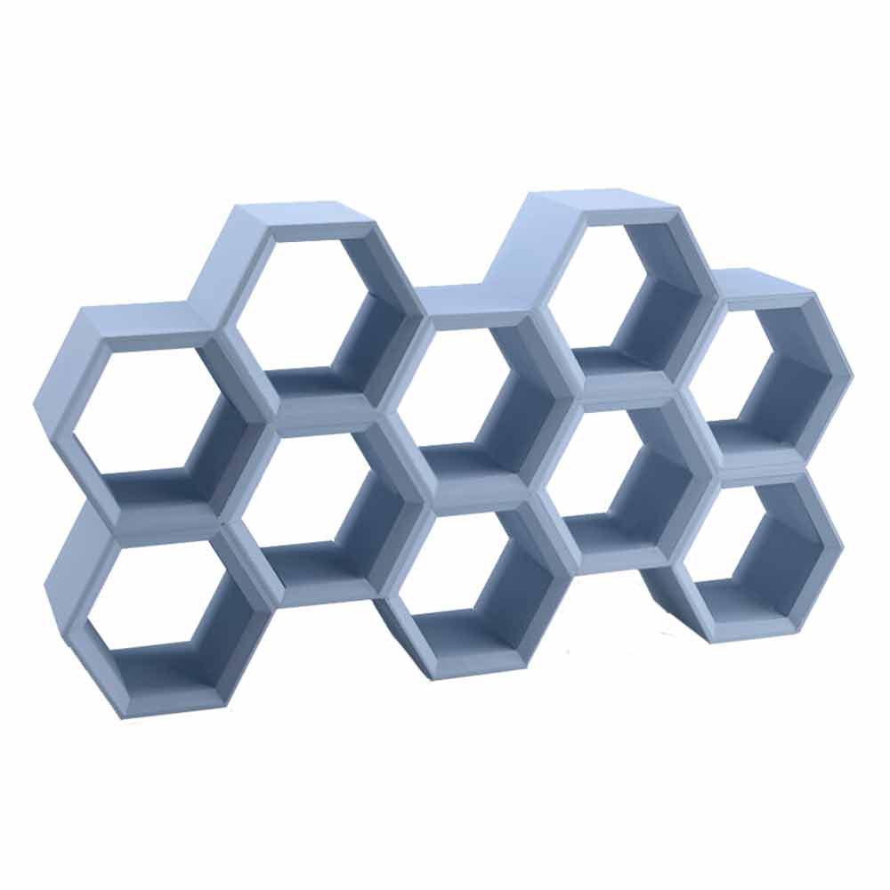 Bibliotecă de perete color Slide Hexa cu celule produse în Italia Hexa este o bibliotecă din polietilenă a cărei formă este inspirată din natură. Celulele conectate din care este compus formează o piesă de mobilier versatilă potrivită atât pentru uz casnic, cât și non-casnic. Forma geometrică este elegantă și cu cele șase laturi permite cel puțin două laturi de sprijin pentru fiecare spațiu.