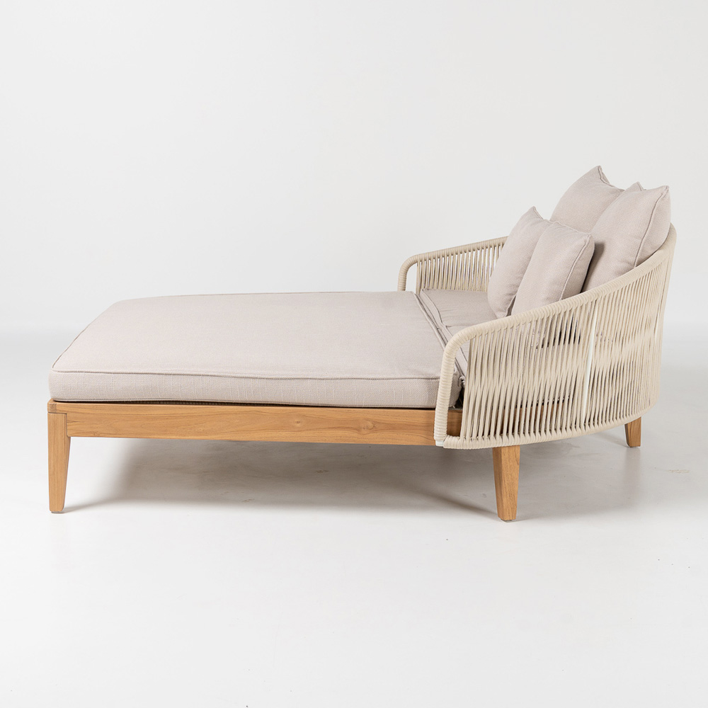 Această canapea extensibilă nu este doar o piesă de mobilier: este o invitație de a vă bucura de spațiul exterior cu stil, confort și calitate superioară. Perfectă pentru relaxare, lectură sau conversații în aer liber, va deveni piesa centrală incontestabilă a spațiului dumneavoastră de locuit în aer liber.