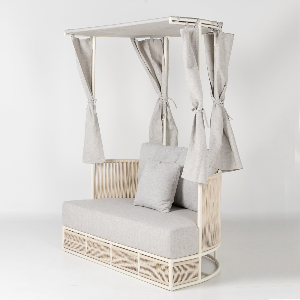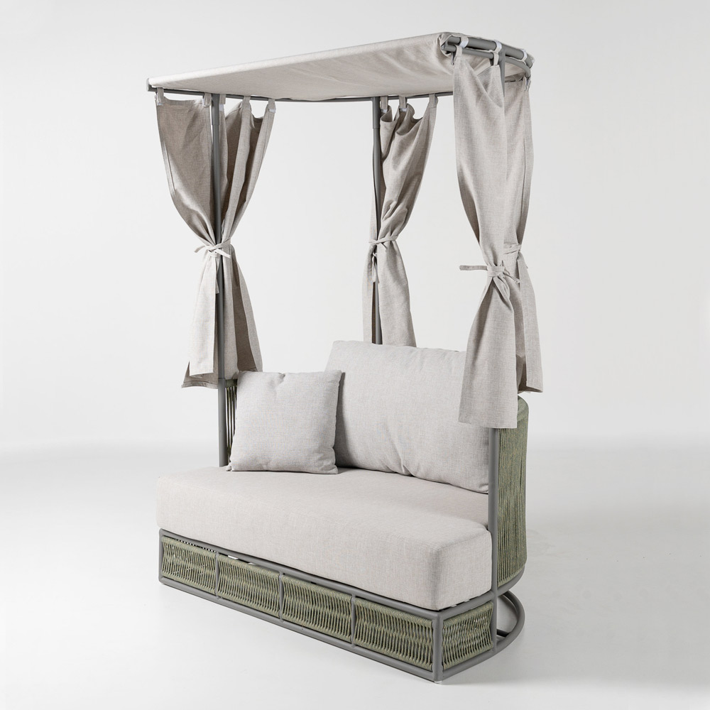Perfectă pentru terase, grădini, hoteluri sau spații de relaxare, această canapea vă invită să vă bucurați de aer liber cu stil: un spațiu dedicat bunăstării, relaxării și plăcerii de a fi în aer liber.