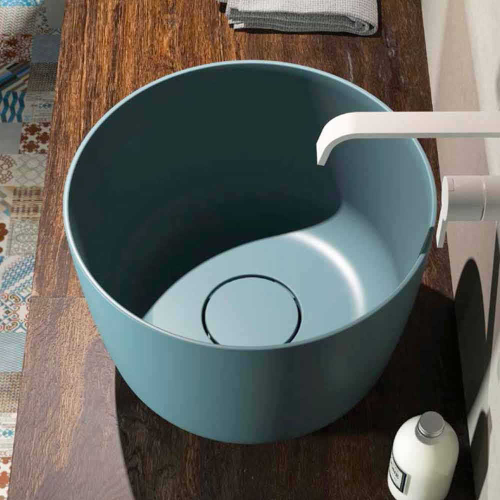 Lallio este un bazin rotund de blat, cu un design minimal și rafinat.