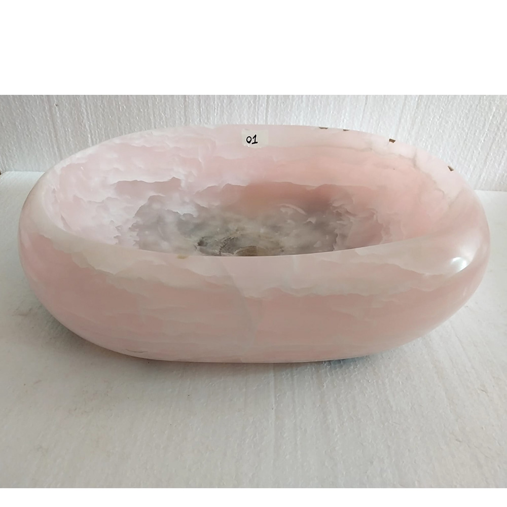 Chiuvetă de blat design din piatră de onix roz Baffo, piesă unică