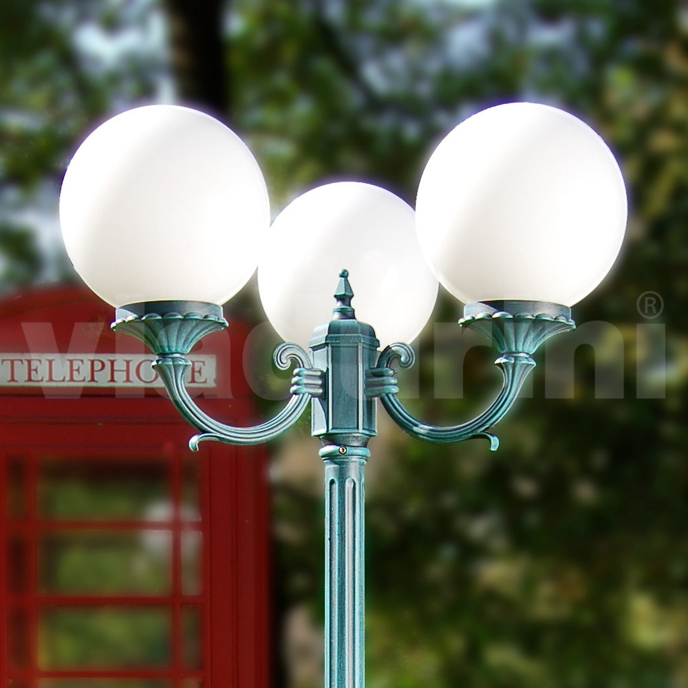 Lampa de gradina realizata cu structura din aluminiu turnat sub presiune si difuzor sfera acrilic opal , in intregime Made in Italy.