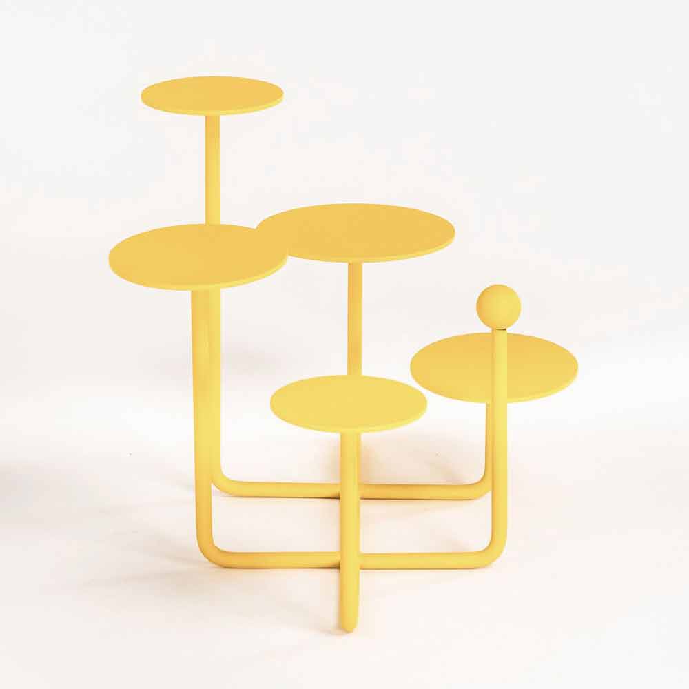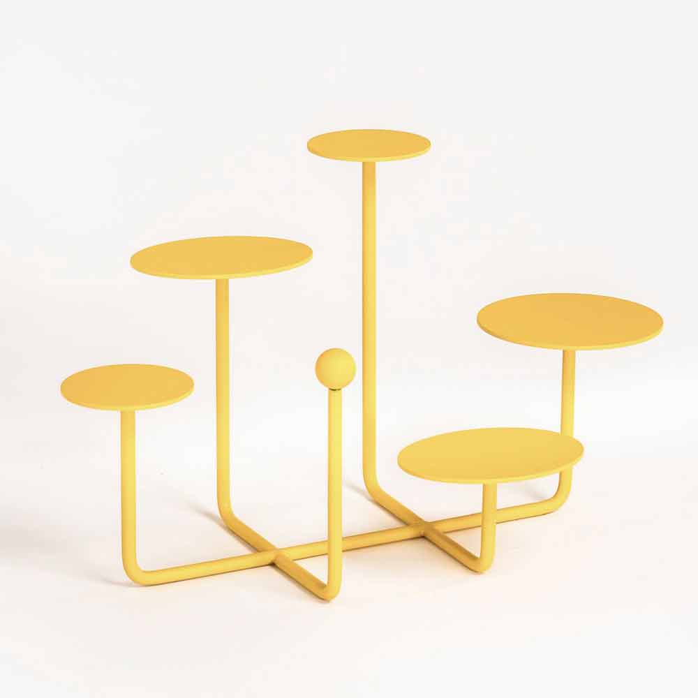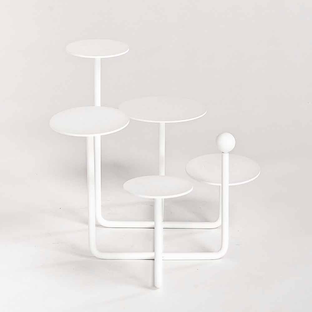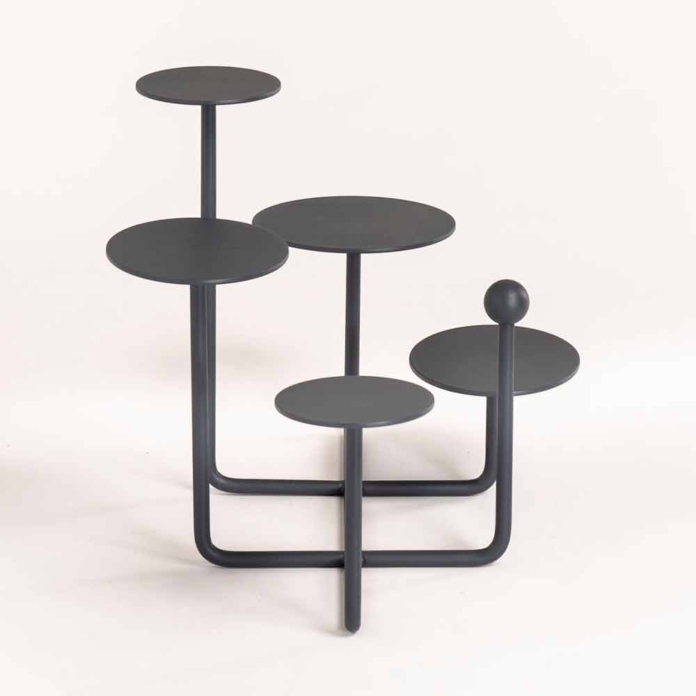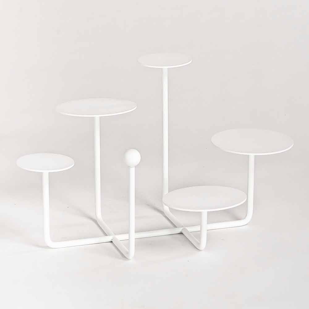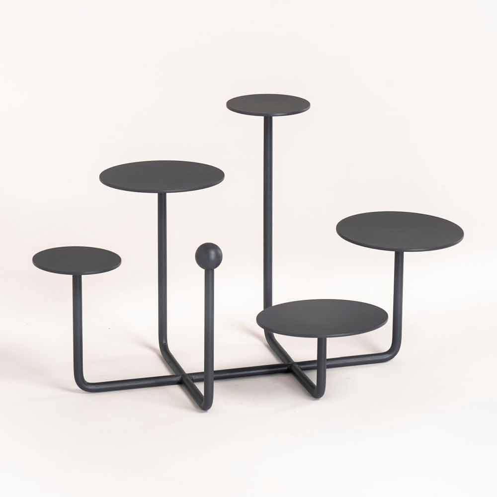 Acest backsplash este realizat în întregime în Italia, din oțel vopsit RAL, ceea ce conferă produsului un design modern și rafinat , iar structura sa este alcătuită din 5 blaturi practice rotunde plasate la diferite înălțimi, ideale pentru produse de patiserie mici sau pentru mâncare cu degete. Datorită formei și dimensiunilor reduse, acest produs este ideal pentru a fi așezat pe masă ca un adevărat element de design care ajută la transformarea fiecărei creații culinare într-o adevărată operă de artă.