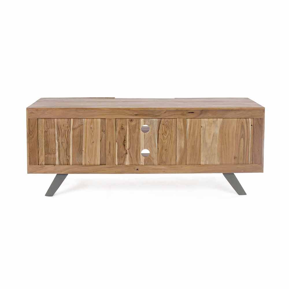 Dulap TV cu structură din lemn de mango și inserții metalice.