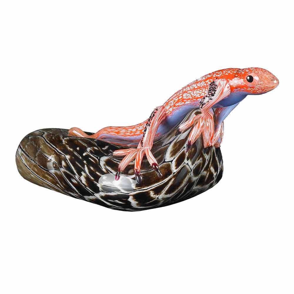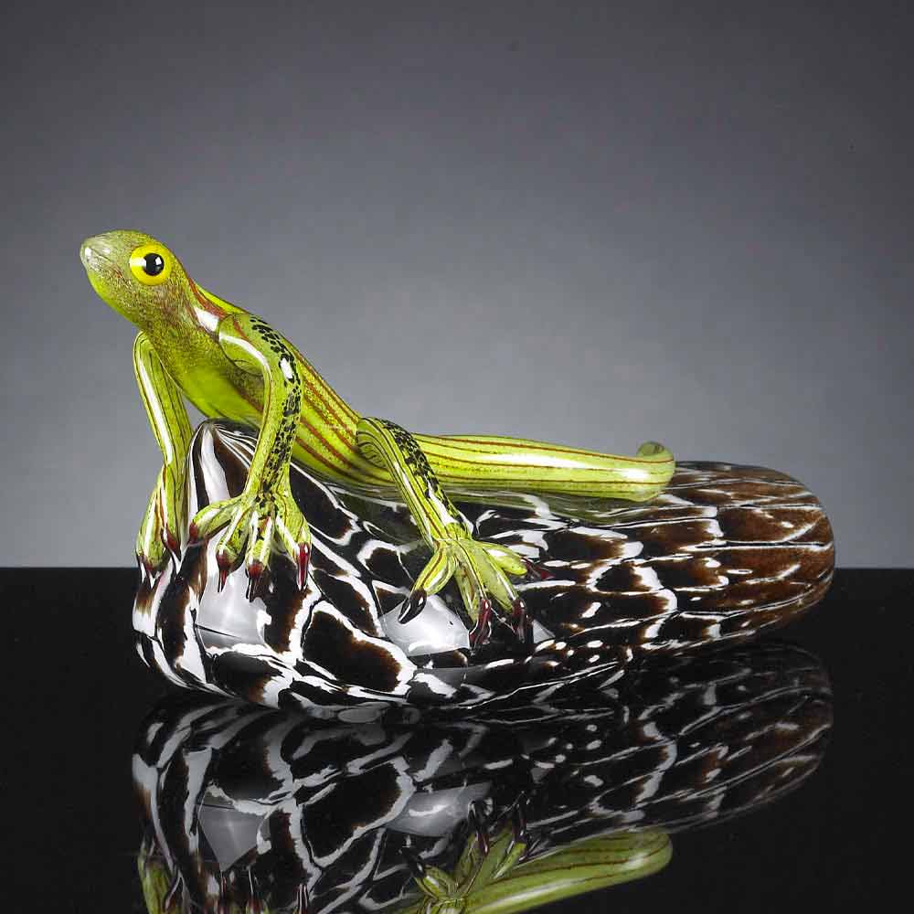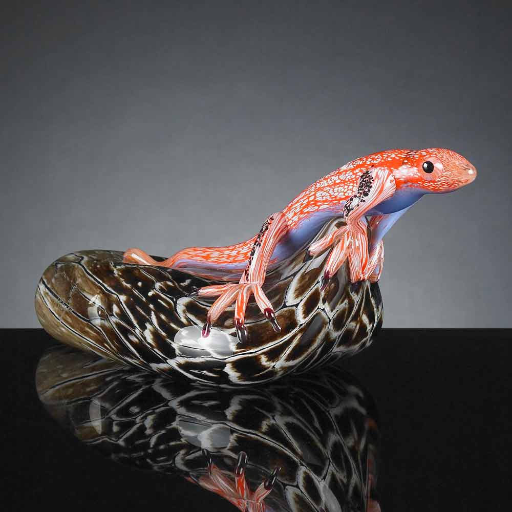 Ornament în formă de șopârlă pe o piatră din sticlă colorată Fabricat în Italia, bine.