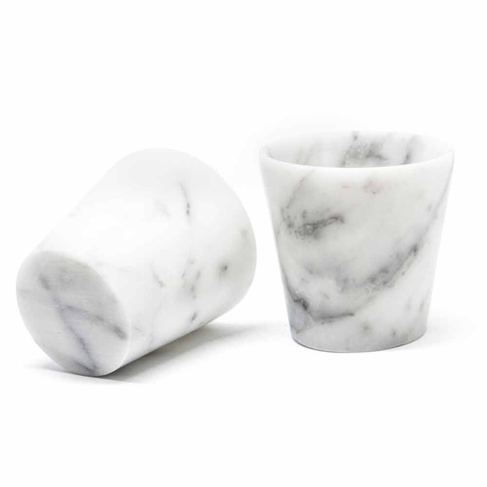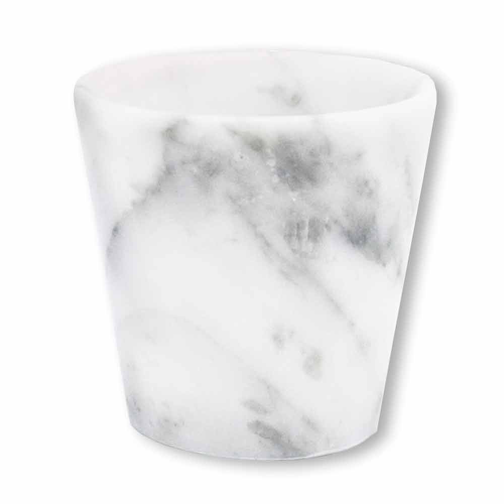 Pahar pentru grappa din marmură albă de Carrara din satin realizat integral în Italia.