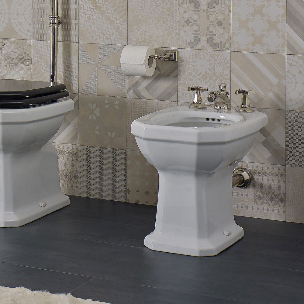 Bidet realizat în Italia în ceramică albă, stil clasic, Nausica.