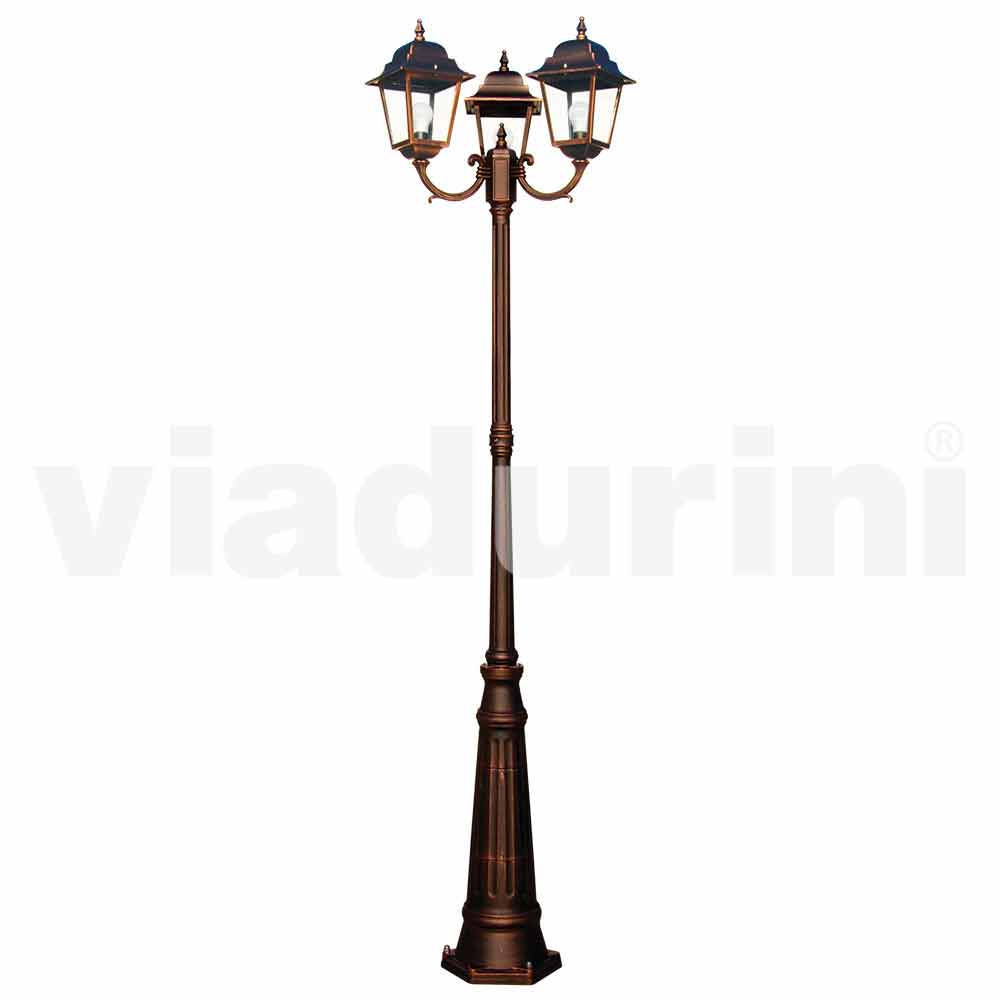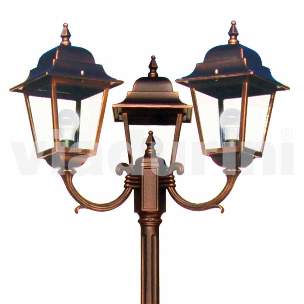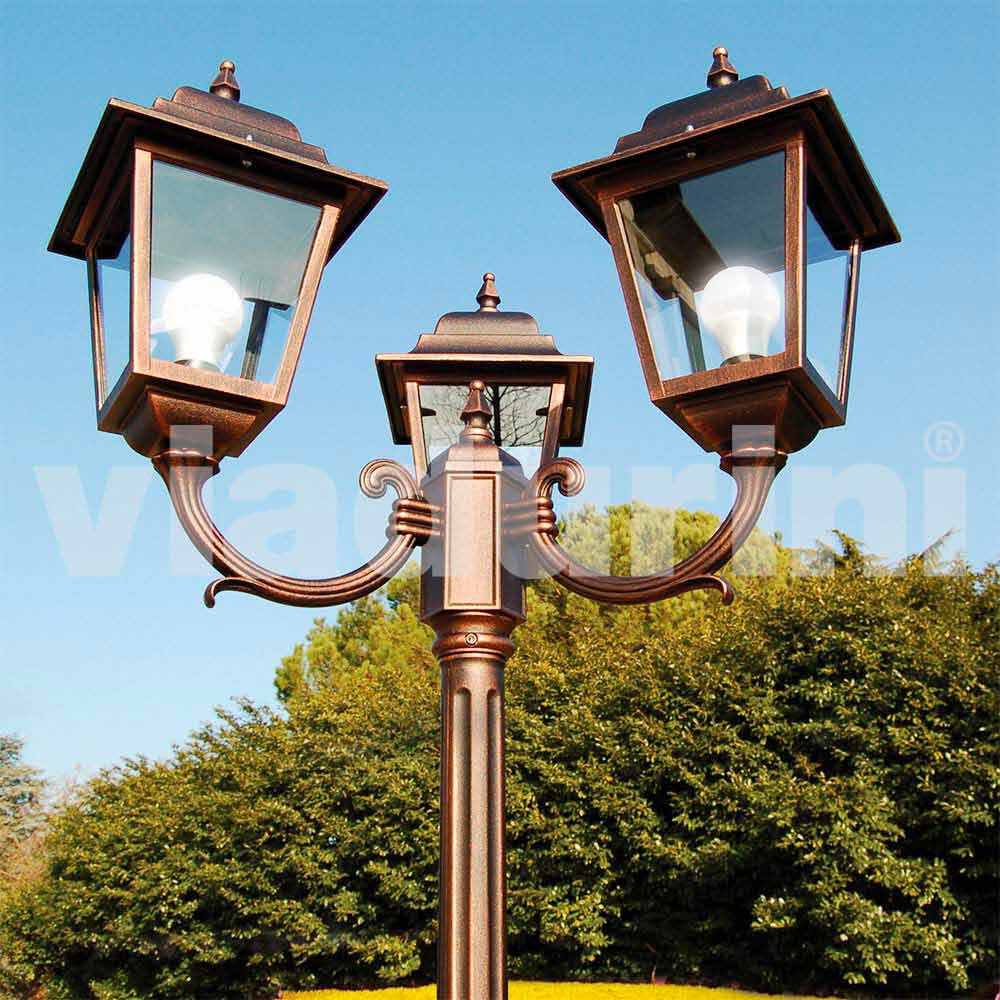 Lampă clasică de exterior din aluminiu fabricată în Italia, Aquilina Aquilina este o lampă de grădină cu trei lumini realizată manual în Italia cu material de înaltă calitate: structură din aluminiu turnat sub presiune și difuzor din sticlă disponibil: transparent sau sablat.