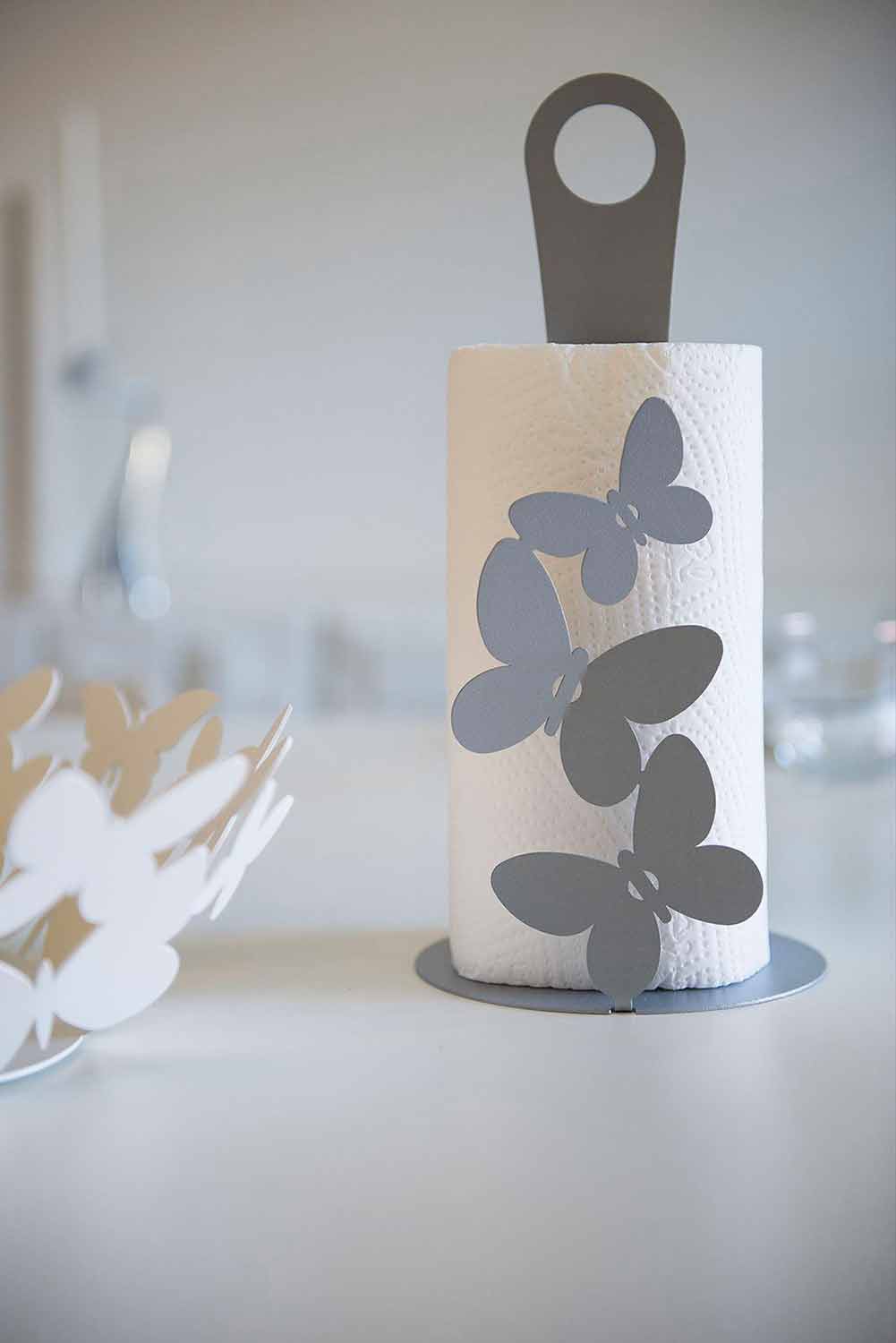 Suport de rulou de bucătărie în stil modern, din fier alb, bej sau fildeș, fabricat manual în Italia.