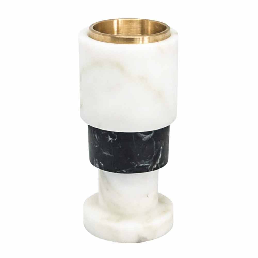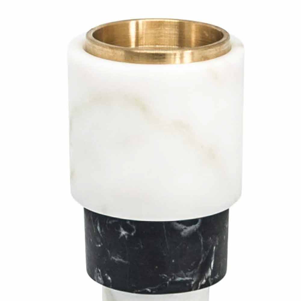 Suport pentru lumânări de design realizat din marmură albă de Carrara, marmură neagră Marquinia și alamă Made in Italy.