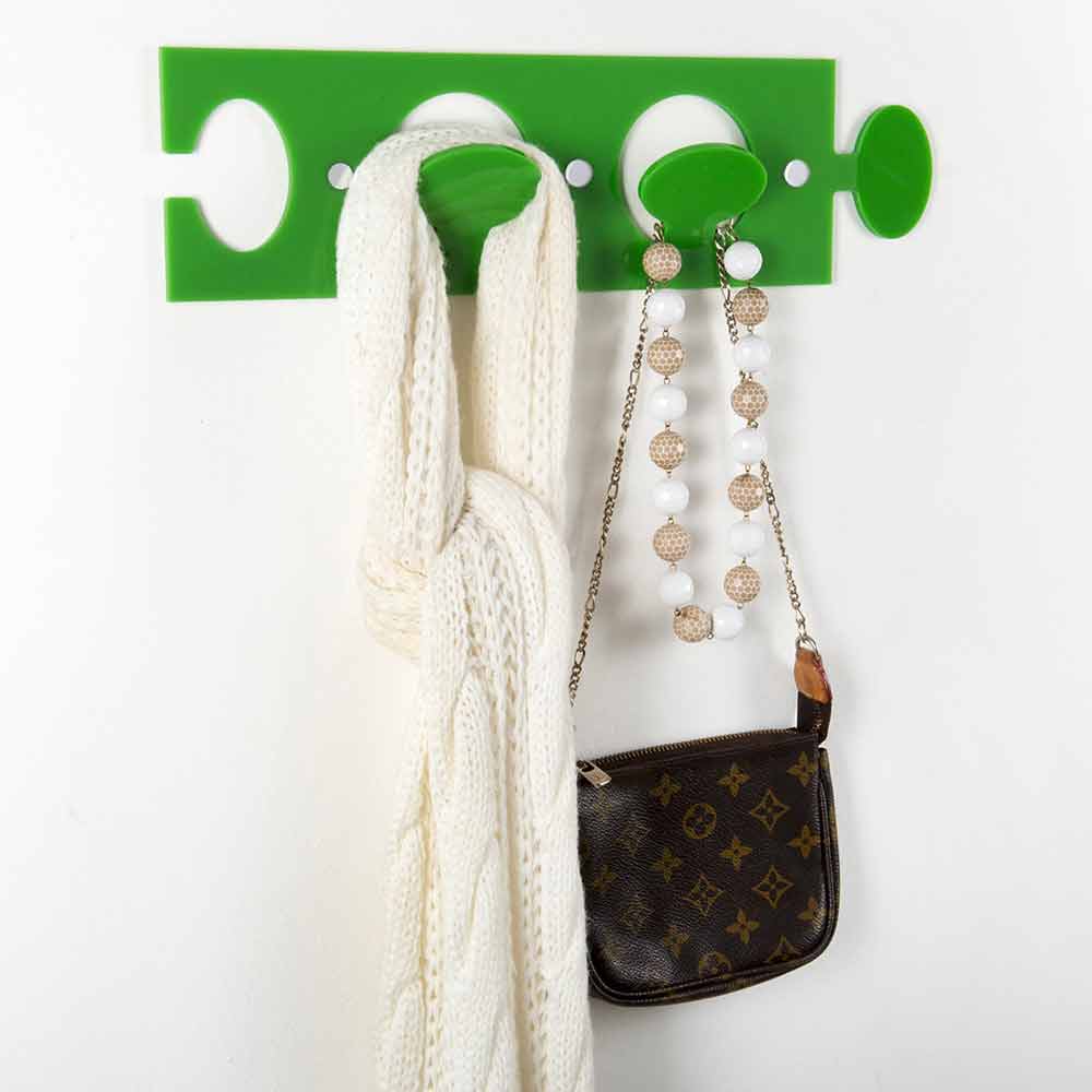 3 Umeraș de perete cu design modern de puzzle italian în plexiglas tăiat cu laser, disponibil în diferite culori.