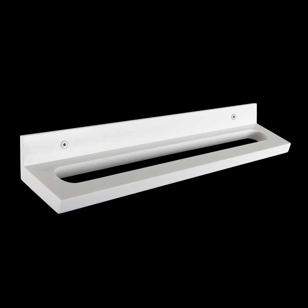 Prosoapă montată pe perete în Corian alb cu șuruburi vizibile, realizată în Italia.