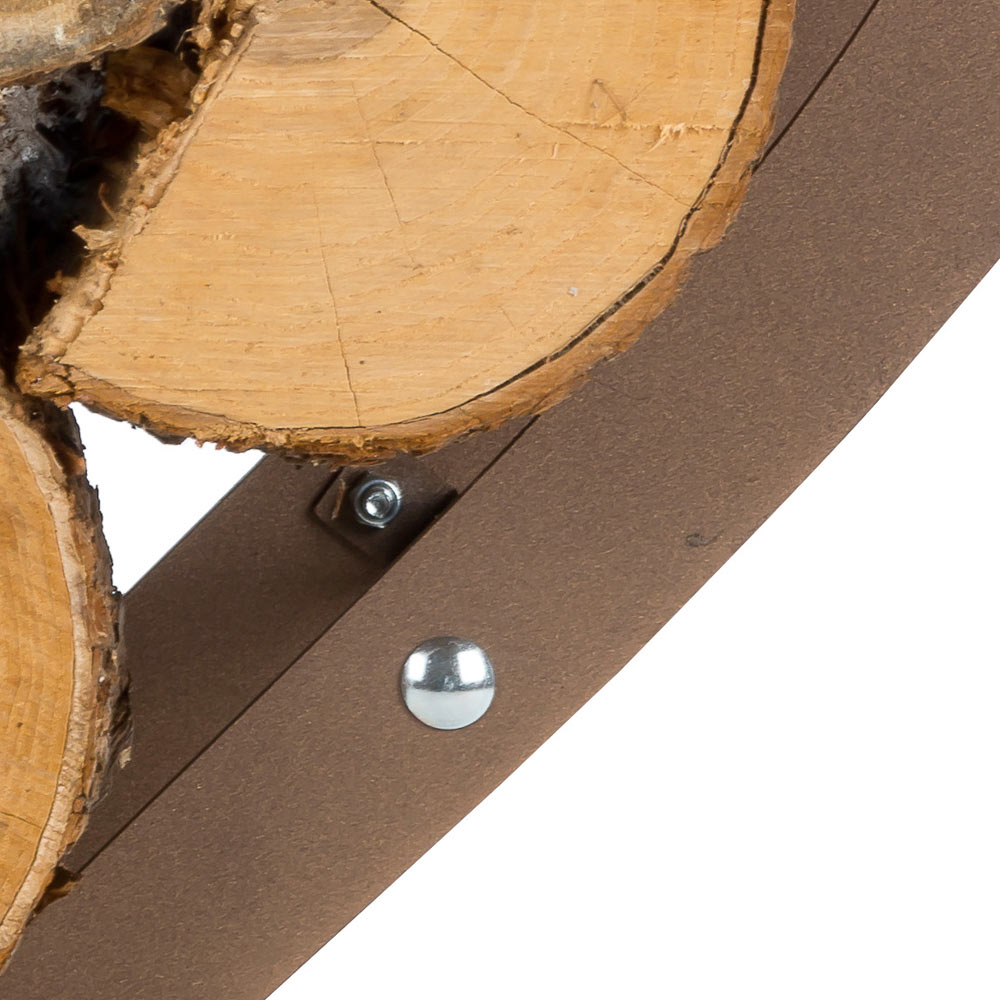 Suport pentru bușteni de design modern, din oțel maro în formă de inimă, fabricat în Italia.