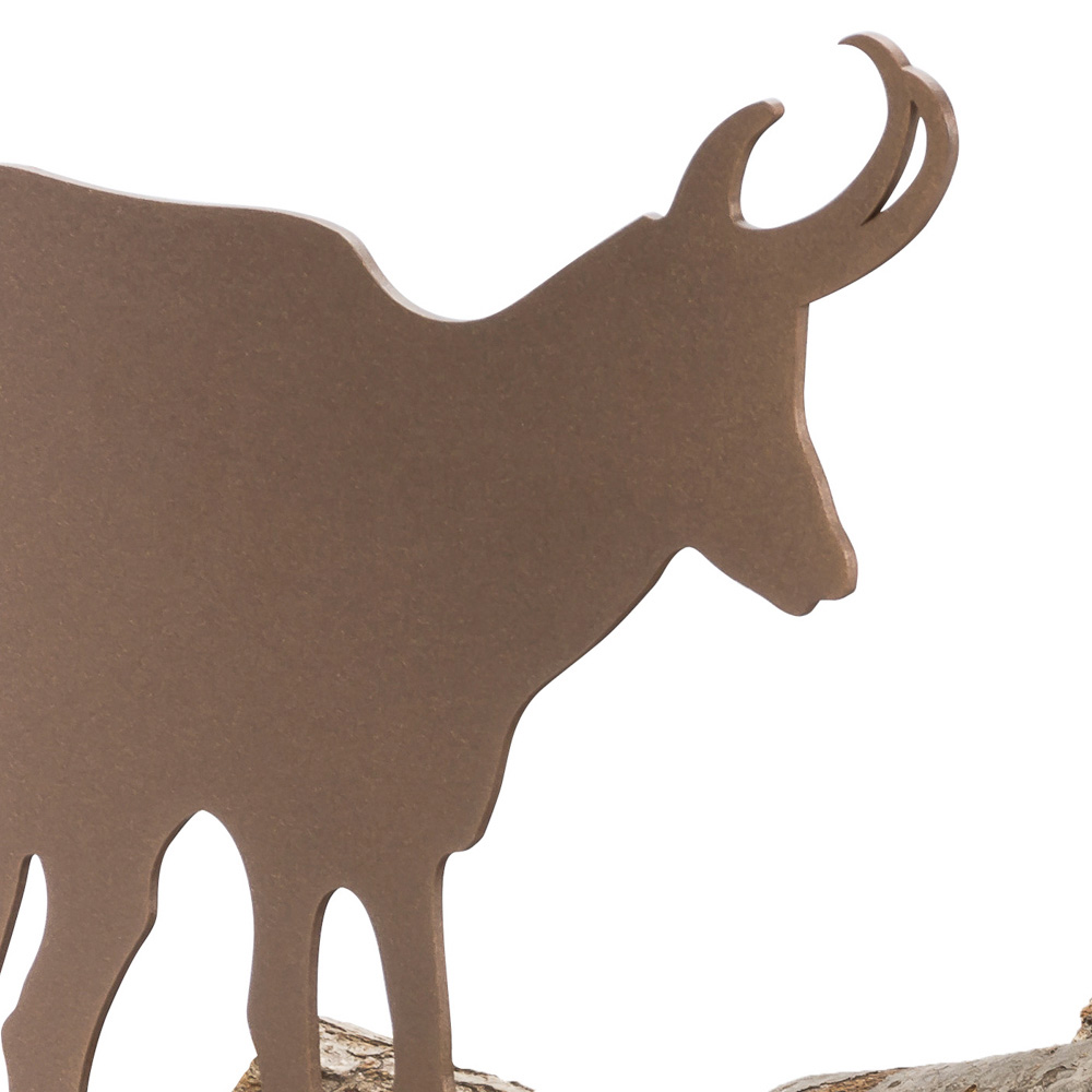 Suport pentru bușteni de design modern, din oțel maro, cu decor în formă de ibex cu accesorii, fabricat în Italia