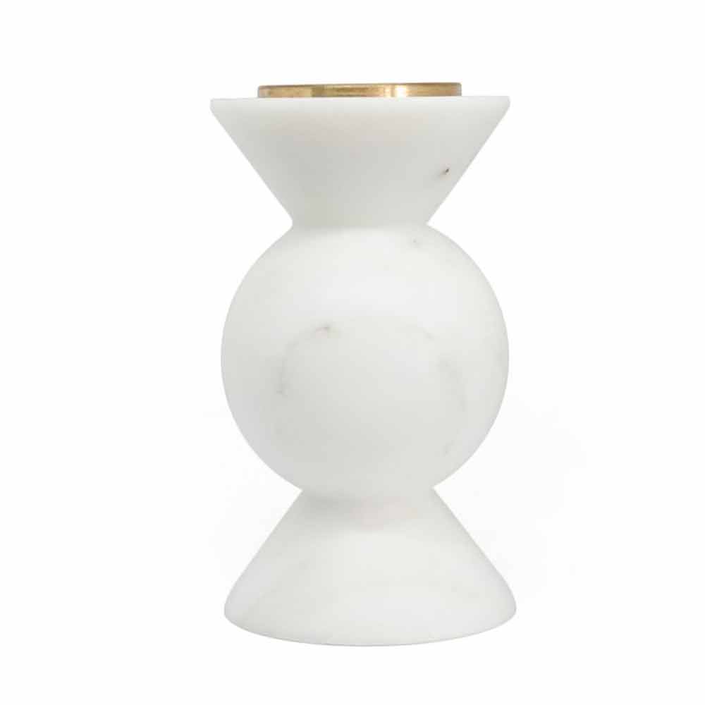 Suport pentru lumânări redus din marmură albă de Carrara și alamă de înaltă calitate. Trebuie considerată o piesă unică, deoarece fiecare bloc de marmură utilizat diferă de celelalte pentru vene și nuanțe. Marmura provine din cariera Poggio Silvestre, o sursă de marmură albă de primă calitate clasificată încă din secolul trecut.