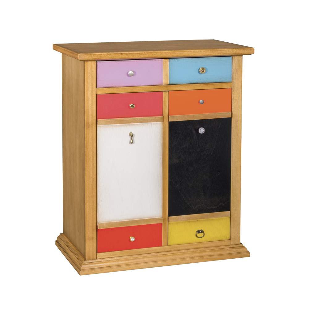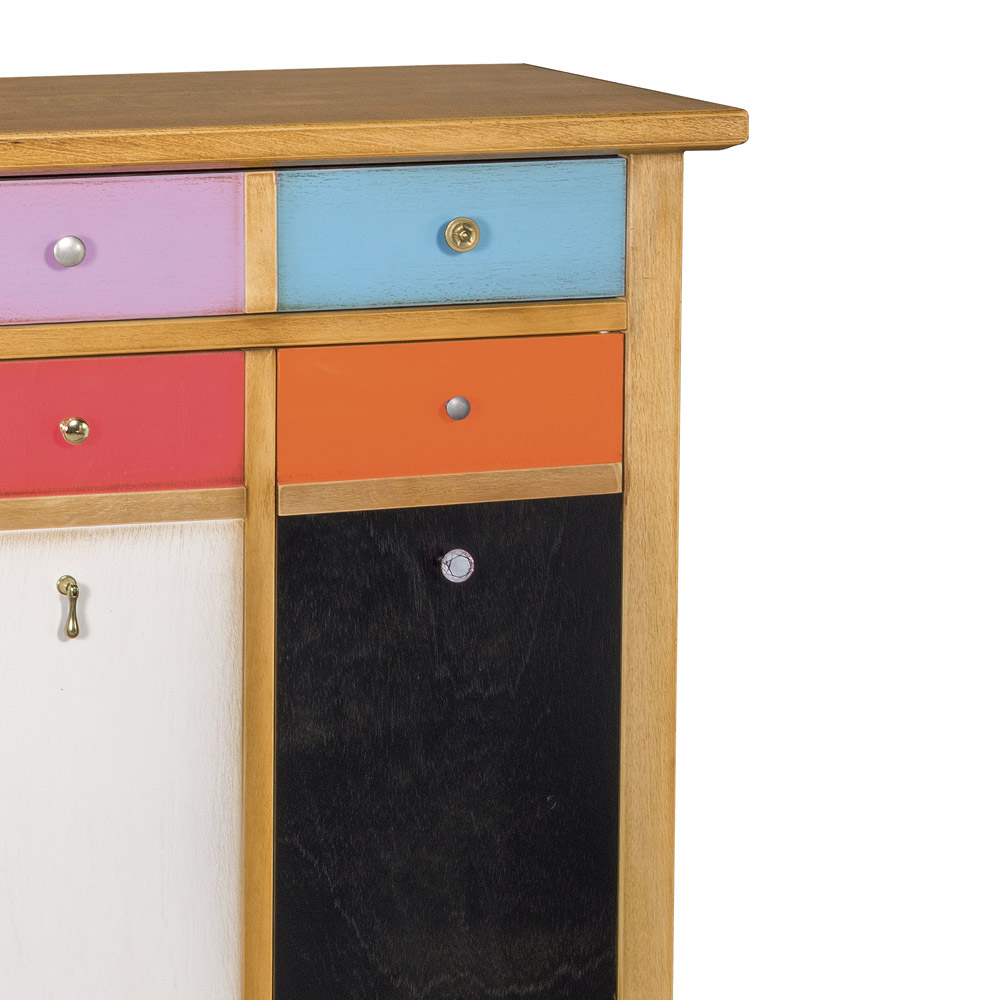 Made in Italy. Bucuria și jocul sunt caracteristicile care descriu acest element cu culori puternice și strălucitoare și formele particulare ale mânerelor. O reinterpretare originală a unei piese de mobilier cu o mare