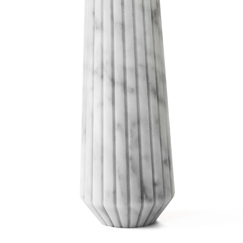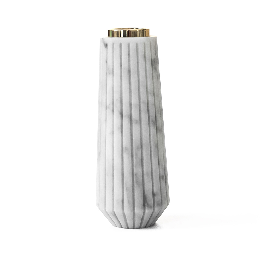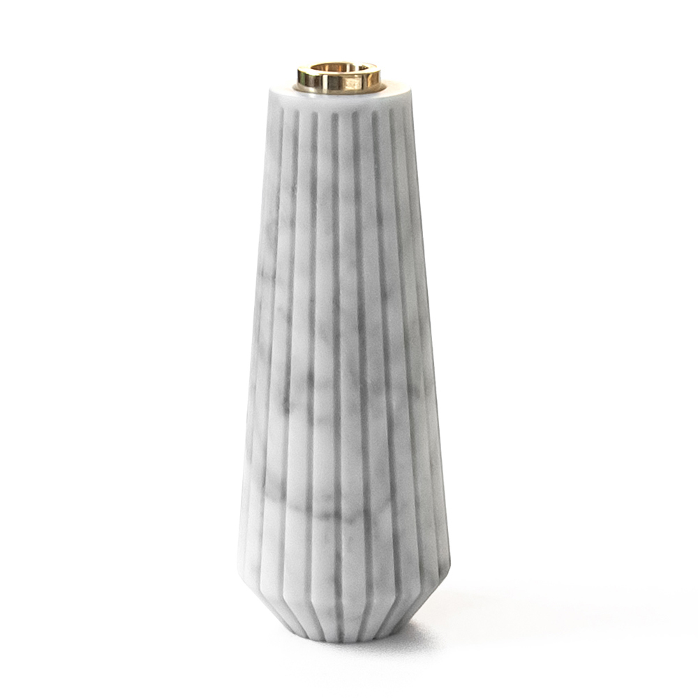 Suport de lumânare mare cu dungi din marmură albă de Carrara și alamă, fabricat în Italia.